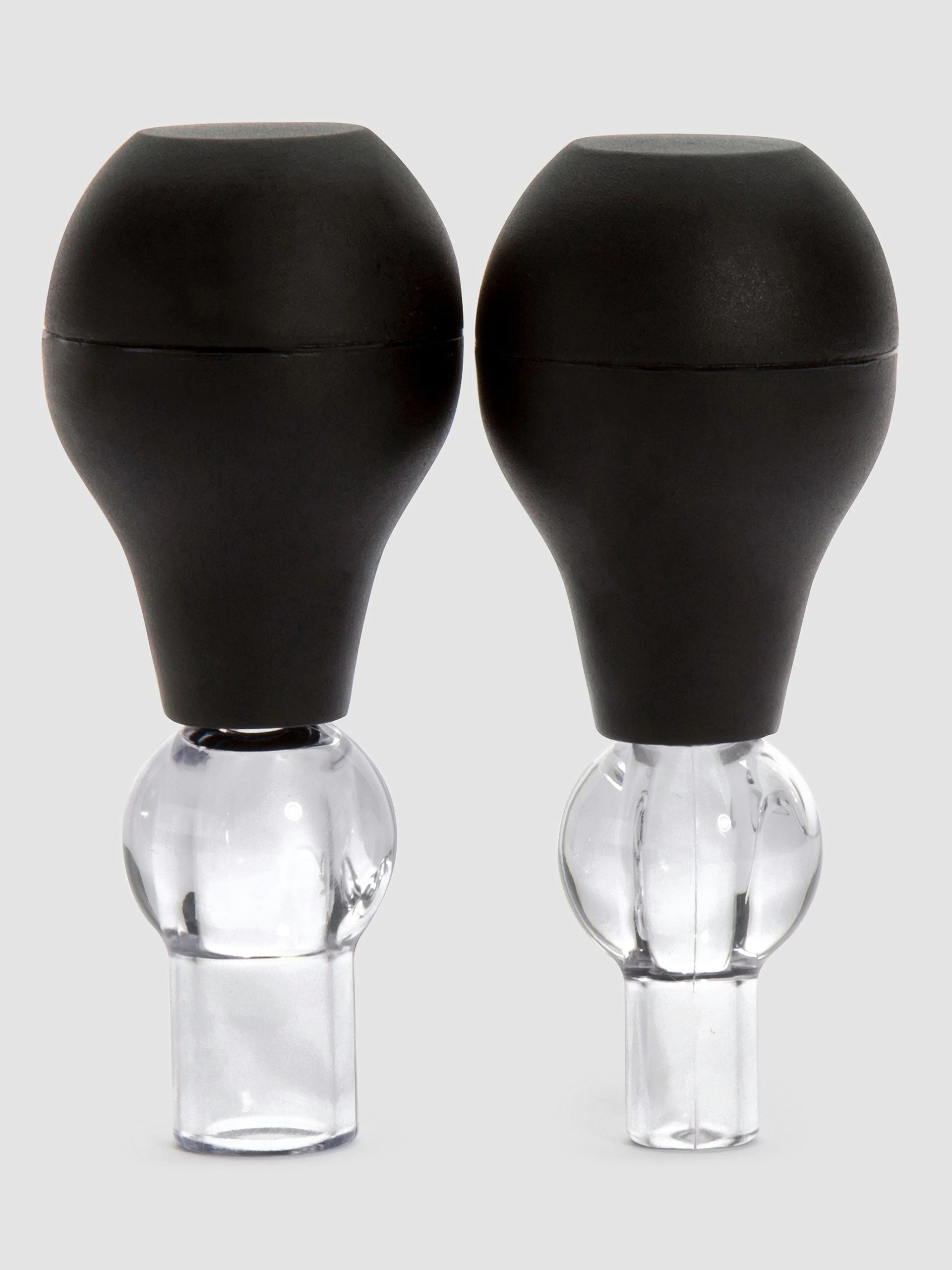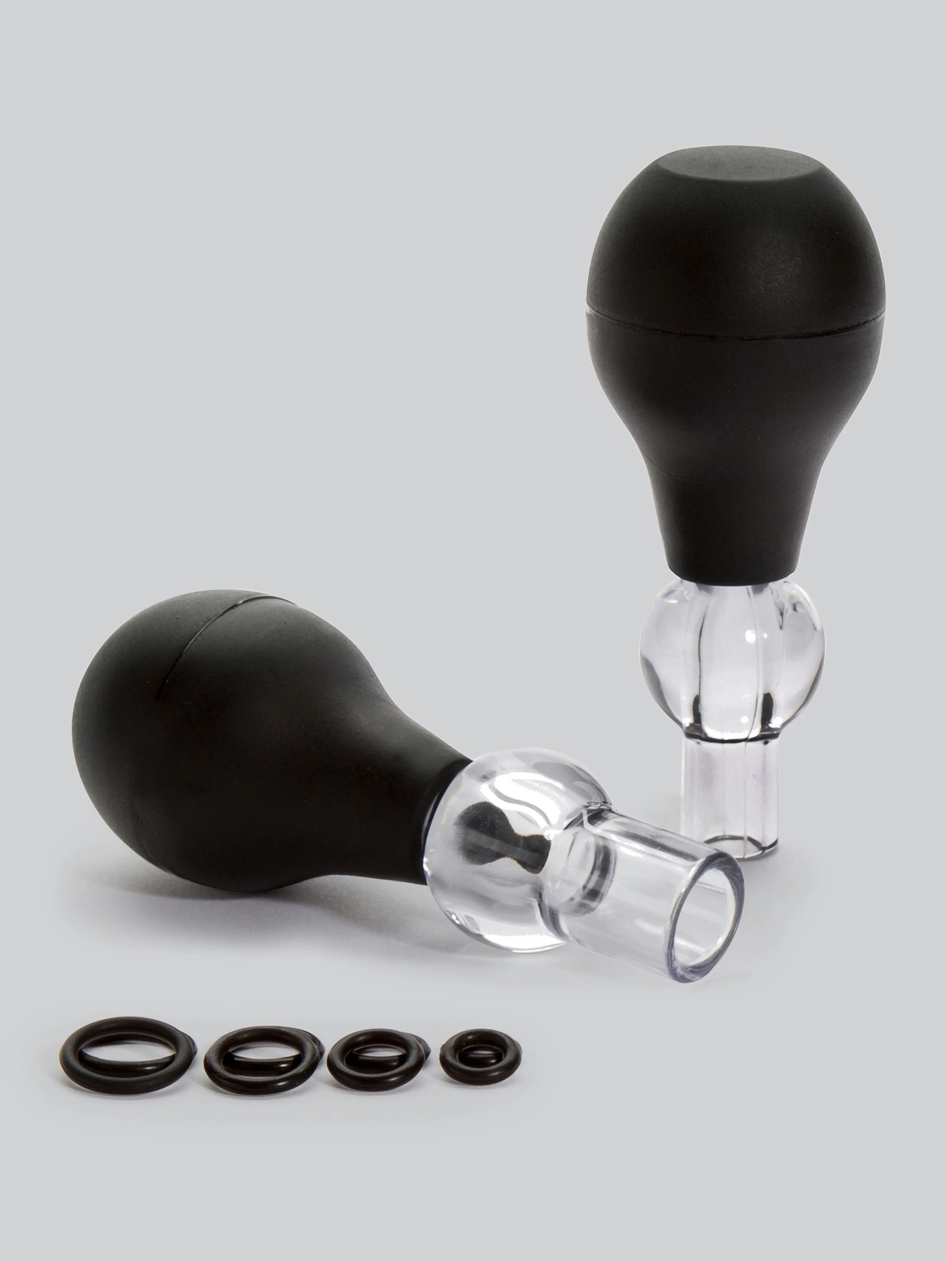 Select a suitable pump size and stretch your chosen nipple ring over the plastic end. Squeeze the bulb and place the opening over your nipple, allowing the pump to gently suck your nipple into the cylinder. Your nipple will begin to swell with sensitivity as blood is drawn to the area.