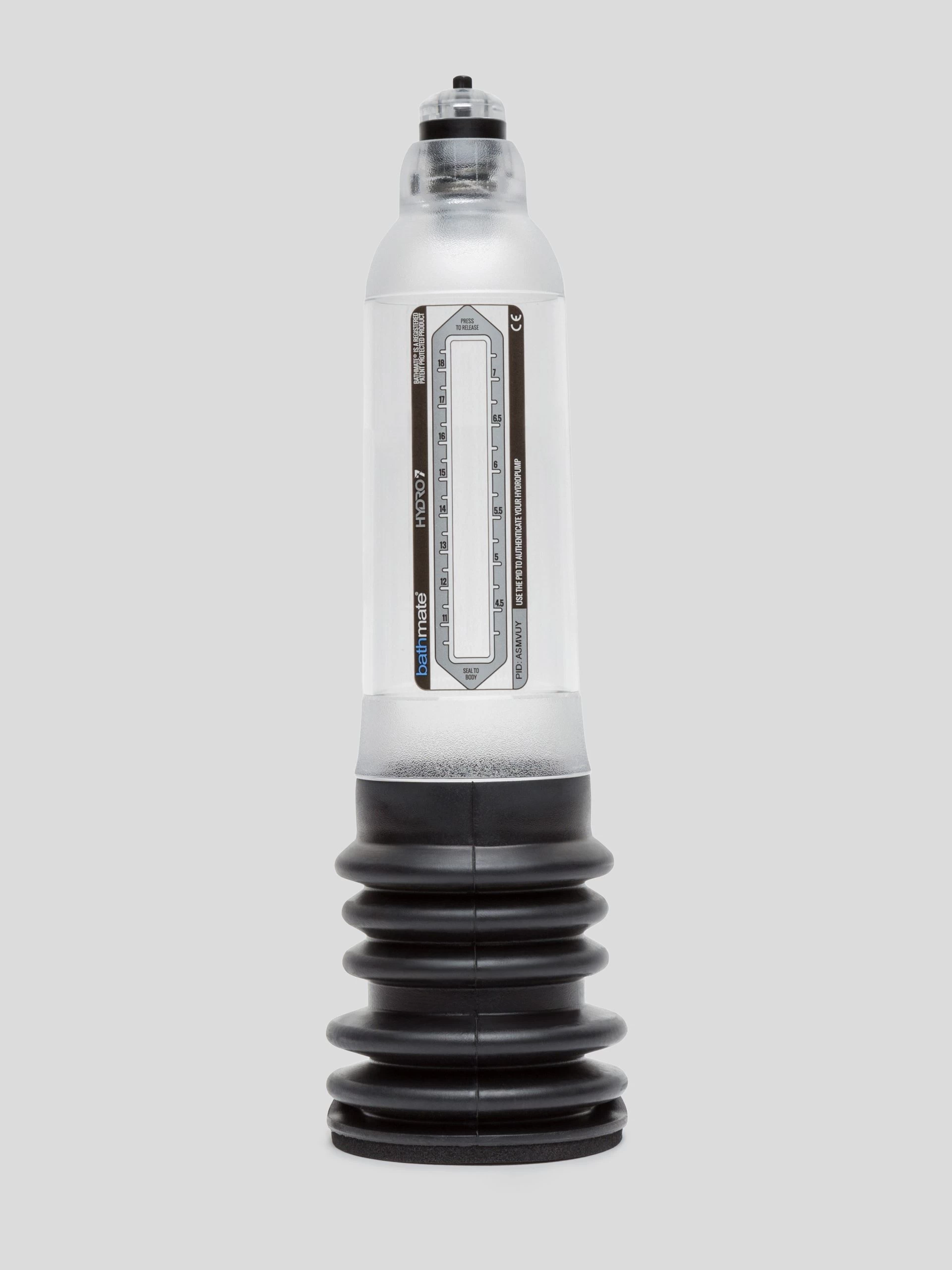With its patented Hydropump system, the Bathmate HYDRO7 harnesses the power of hydraulics to exert a strong pressure on your penis. In turn, this engorges the shaft and head with blood, which may result in longer and thicker erections. Repeated use (between 3 and 7 times a week, up to 3 reps per session) could produce permanently engorged erections.