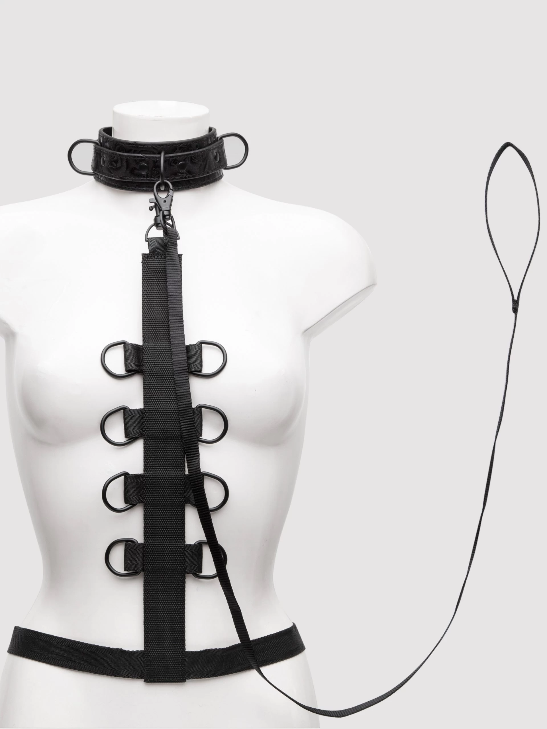 Buckle up because you’re in for one hell of a ride with this adjustable wrist to collar restraint. Submit total control to your lover without compromising on style with the signature Black Rose patterned Restraints Harness.