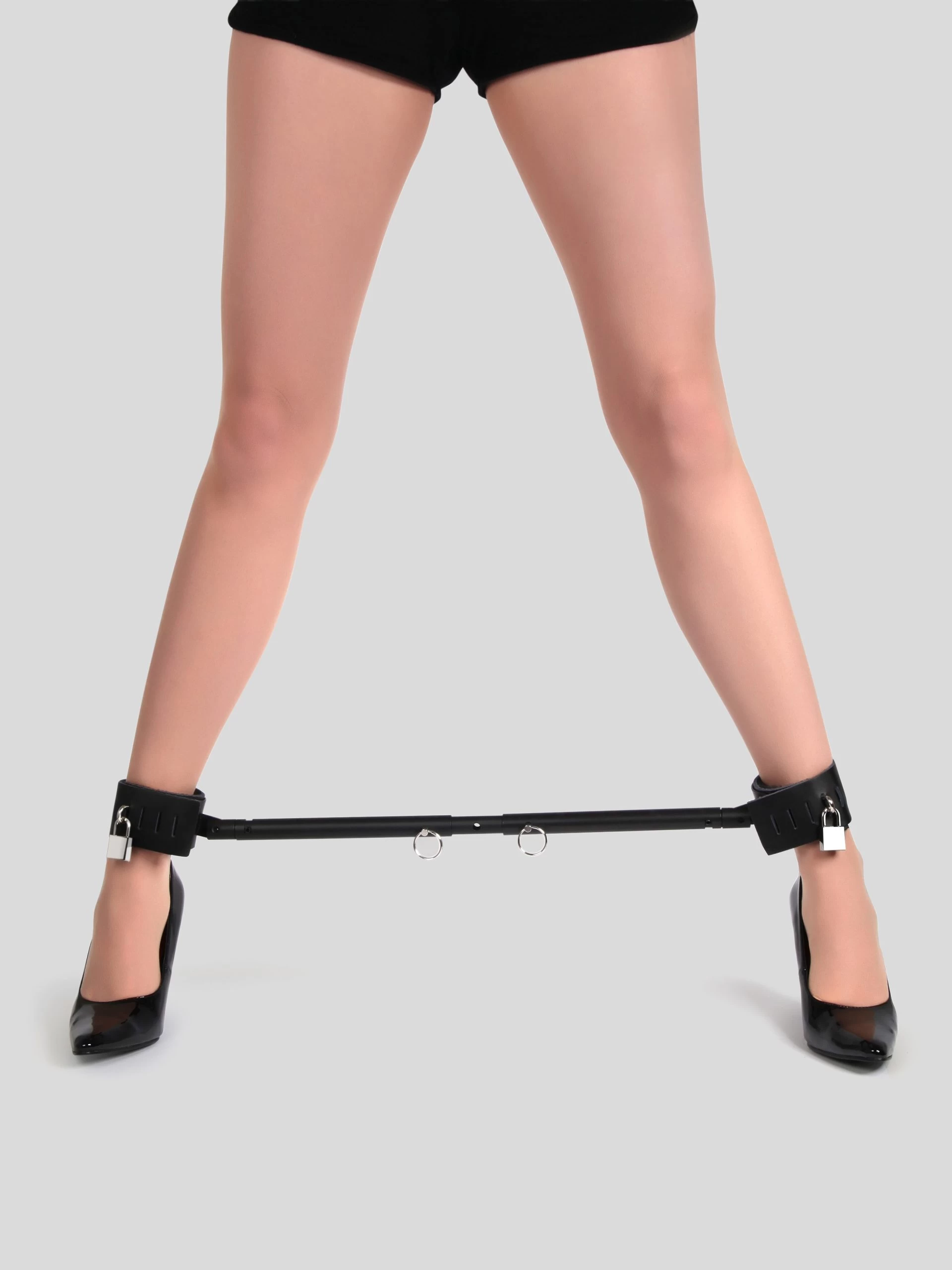 - Adjustable metal spreader bar with padlock system for secure bondage play