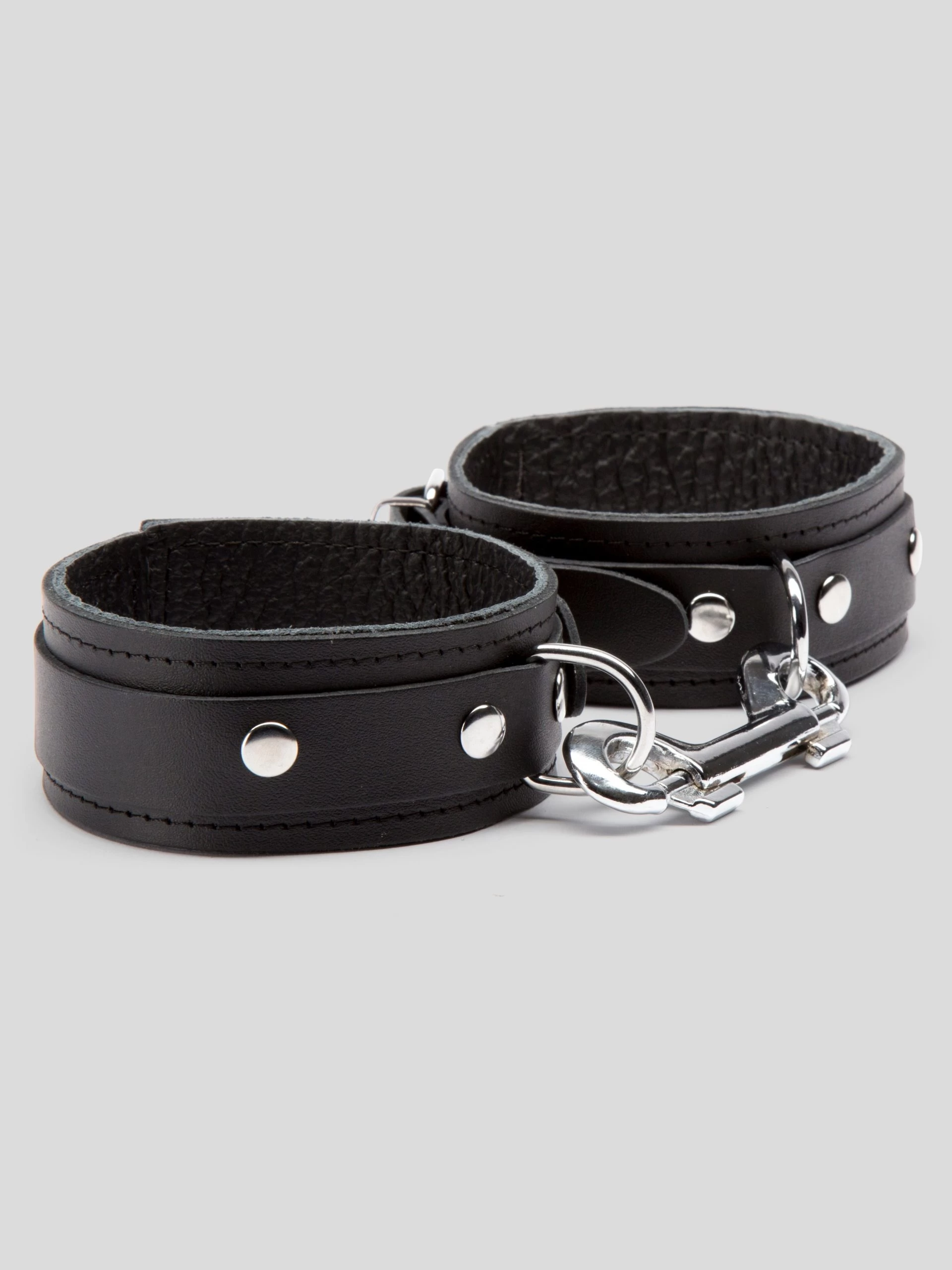 - Sturdy leather ankle cuffs for thrilling bondage play