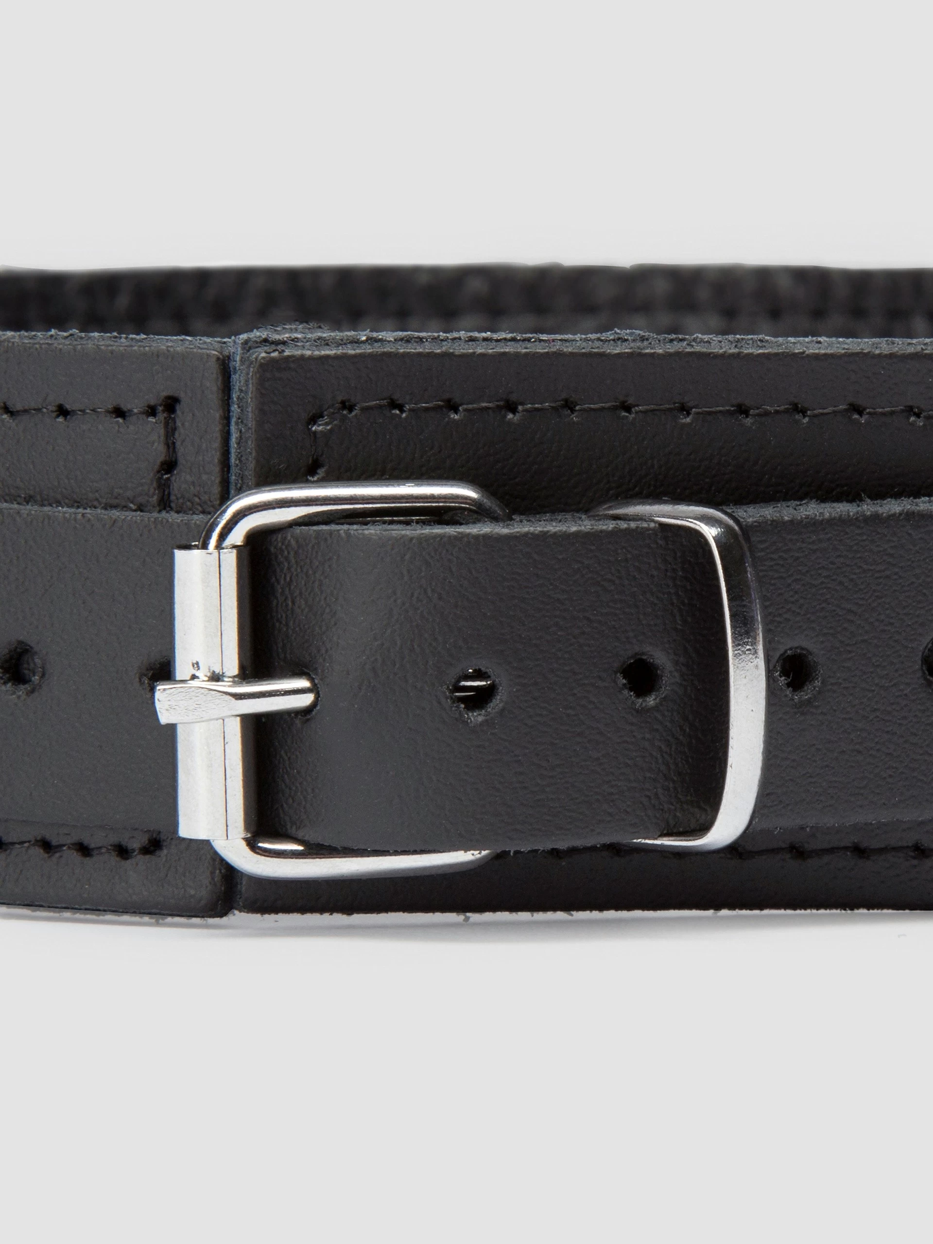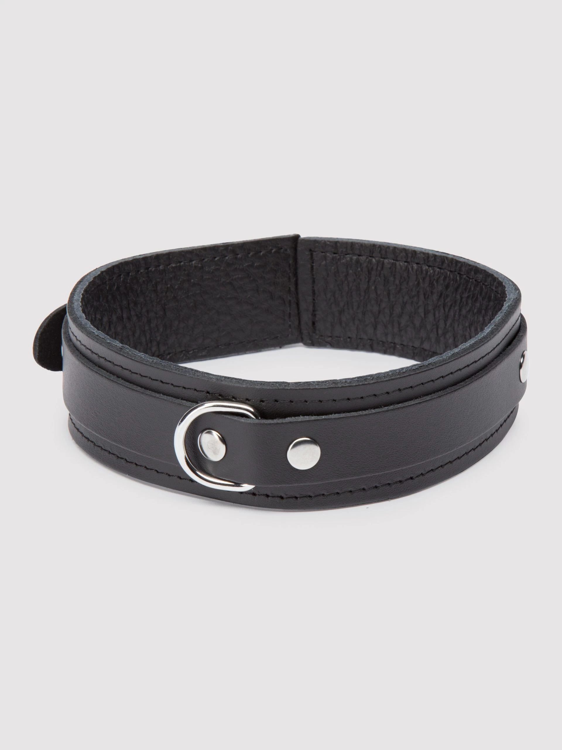 With a 12-hole buckle closure that adjusts the collar between 13.75-18.75 inches it’s perfect for men and women. The strong metal D-ring can be connected to almost any chain or lead for totally customized restraint play.