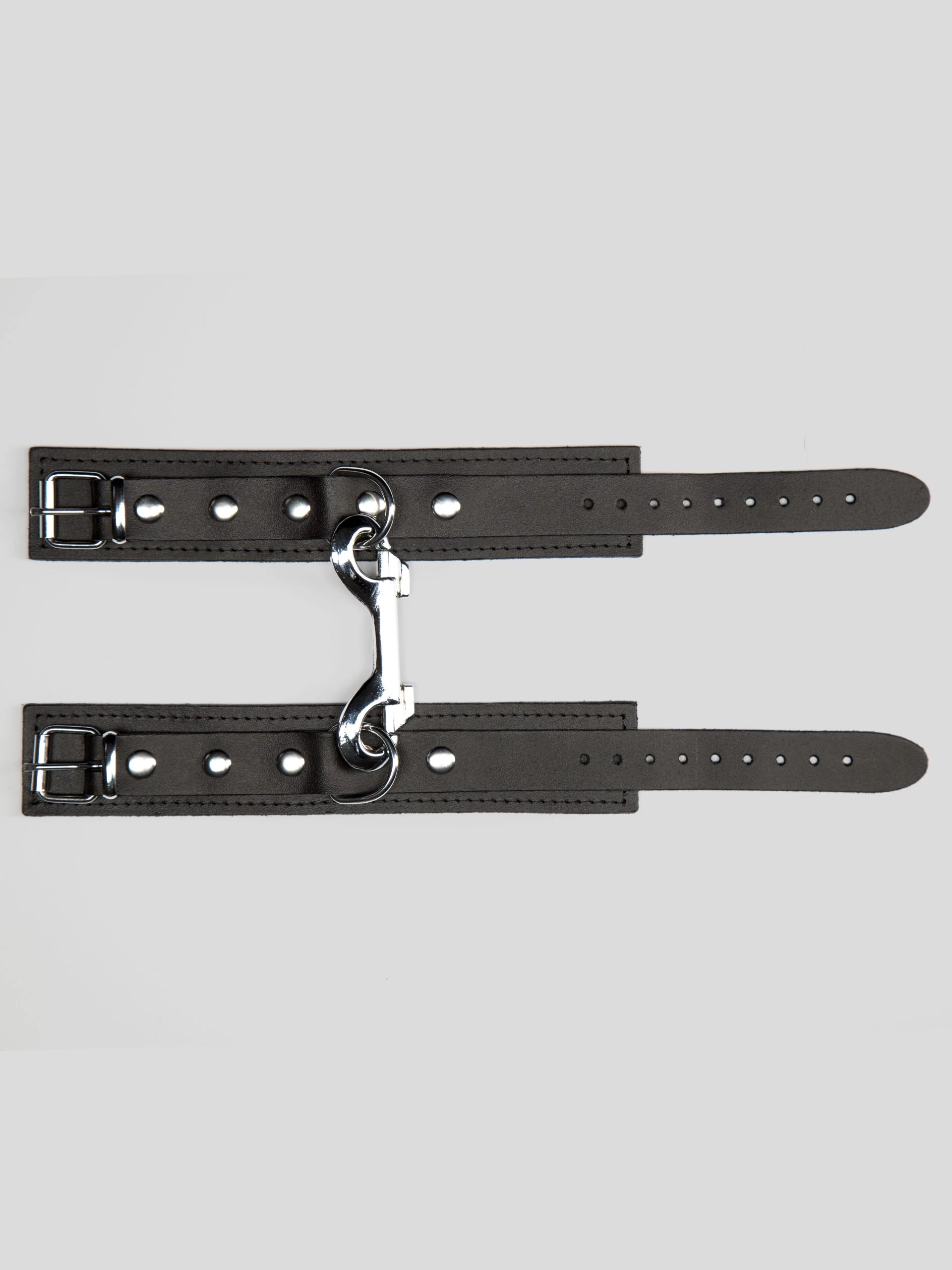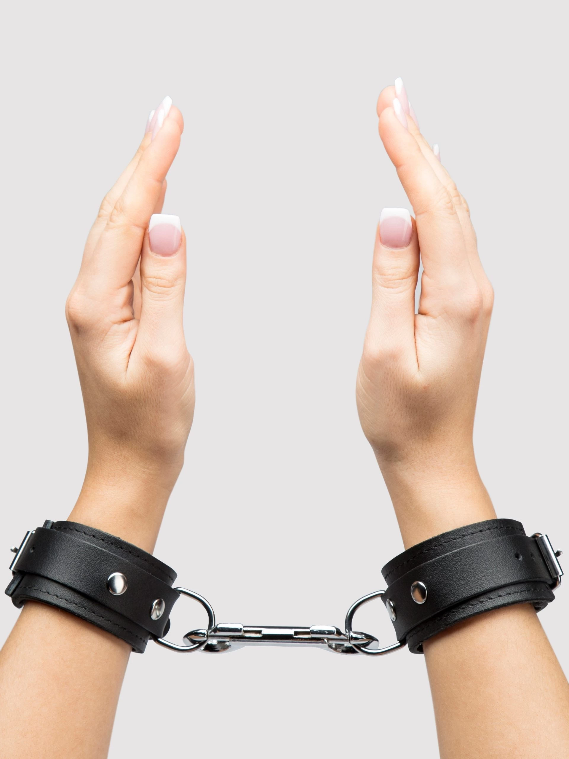 - Sturdy leather wrist cuffs for experienced bondage players