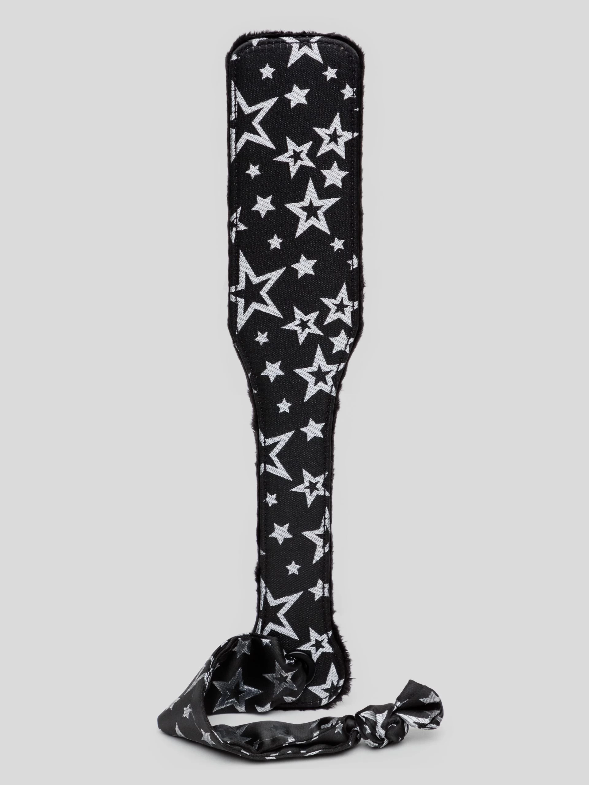 - Bold black and silver star print adds a touch of glamour to your bondage sessions
