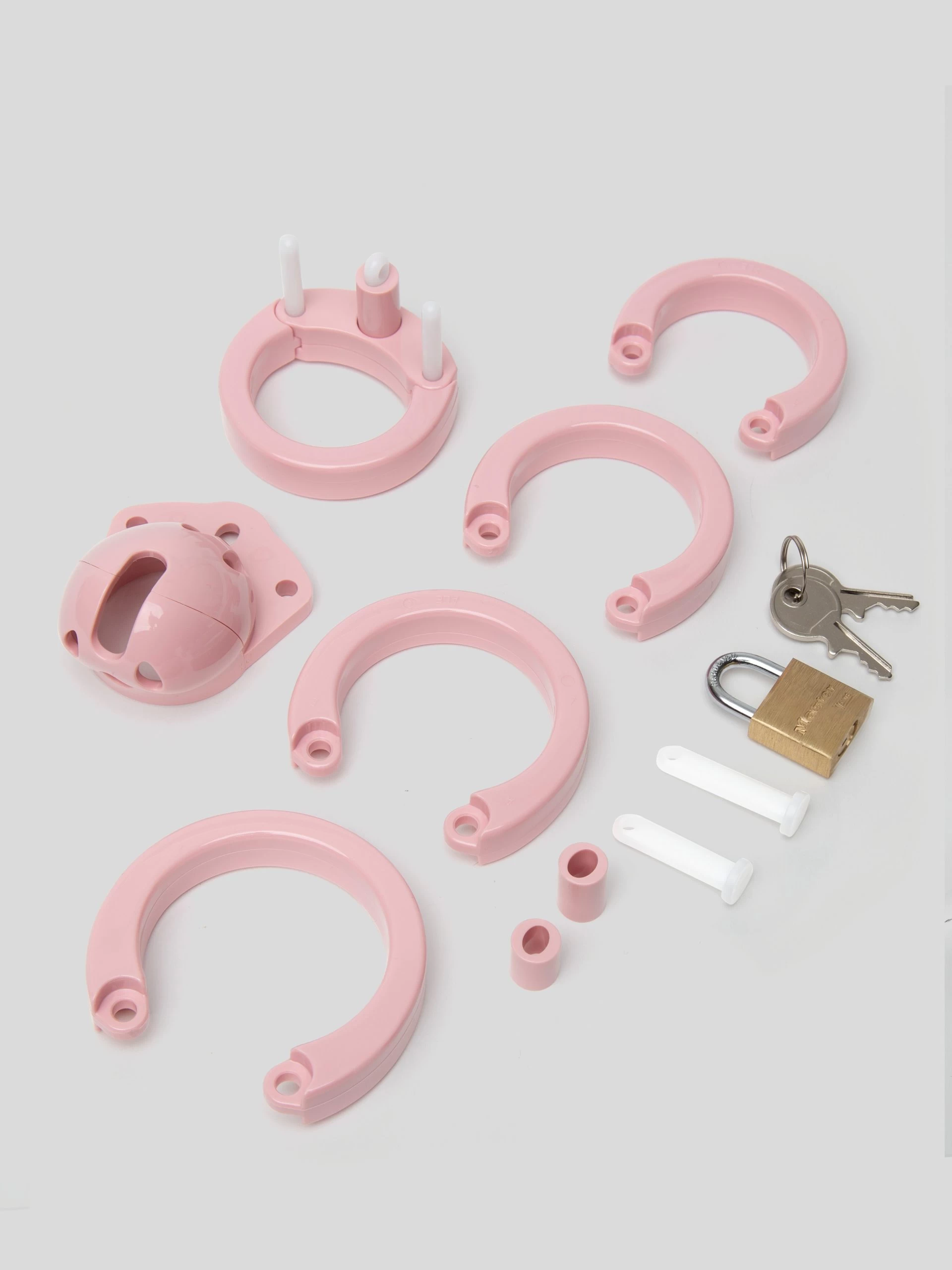 - Pink cock cage made from medical grade polycarbonate for hypoallergenic male chastity play