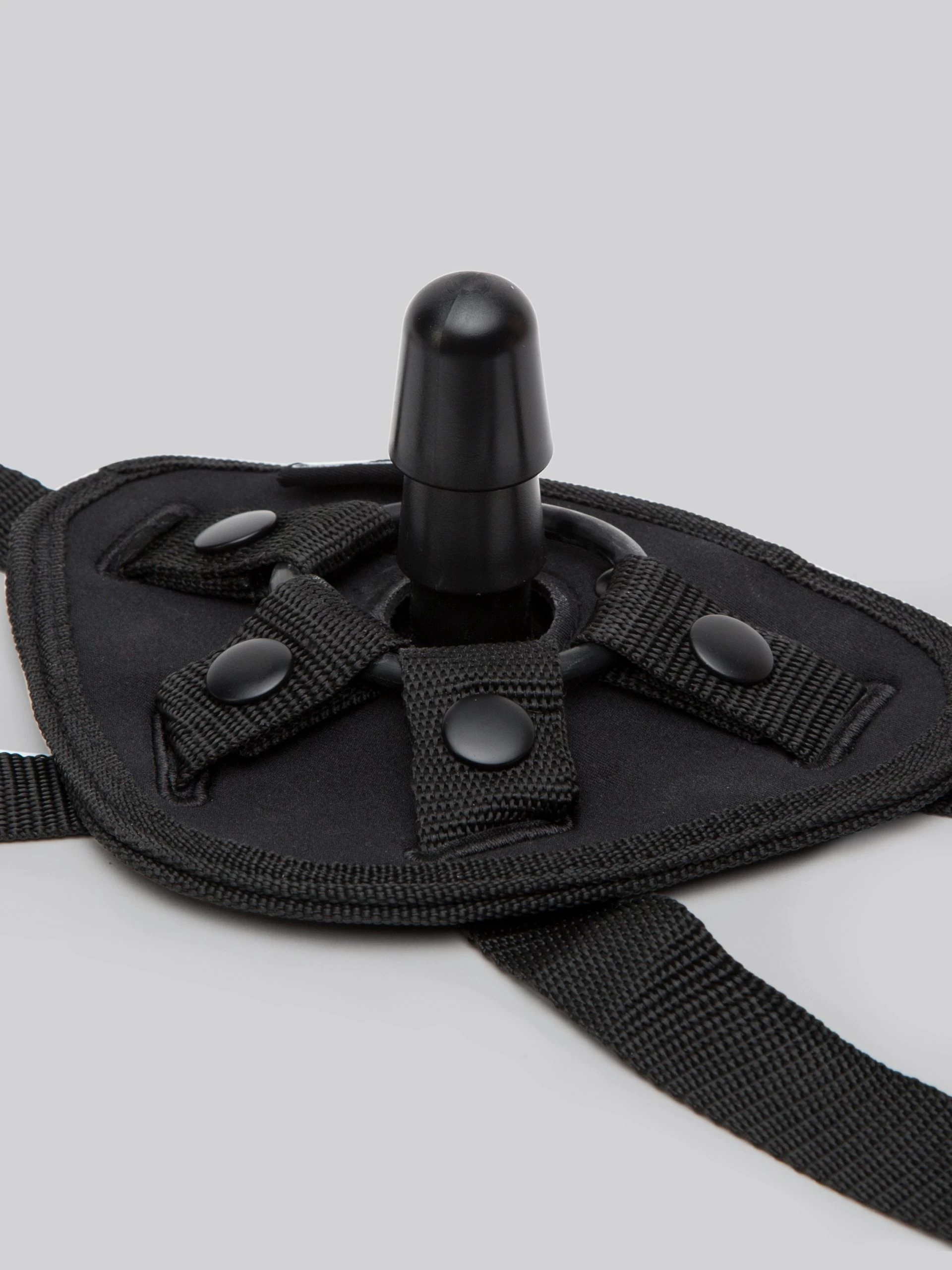 The kit contains an adjustable harness which stretches up to a 69 inch waist size, as well as 2 different compatible plugs for use in a harness and as a suction aid. The kit also contains 3 different sized O-rings, water-based lubricant, toy cleaner and 2 refresher powders.