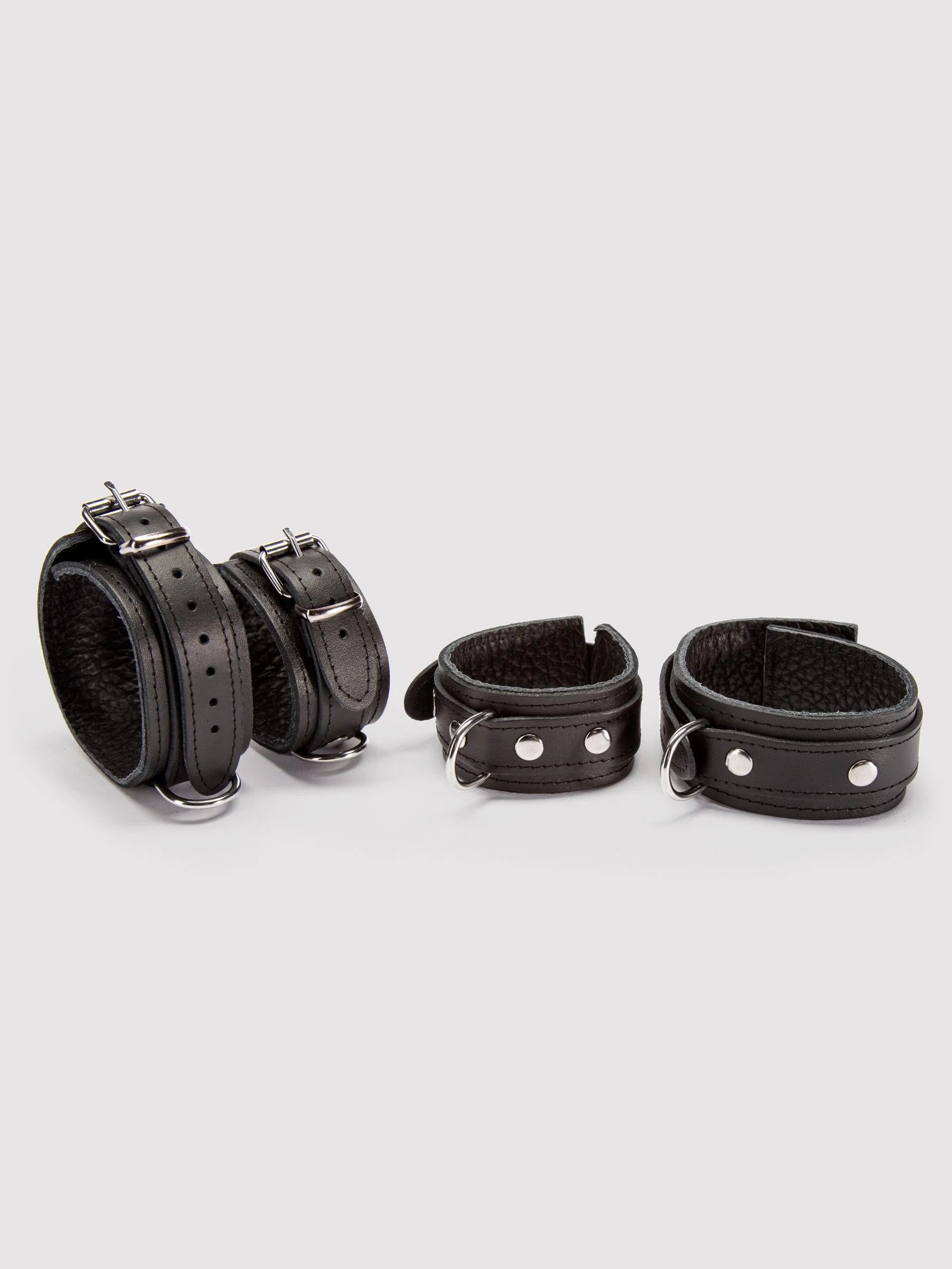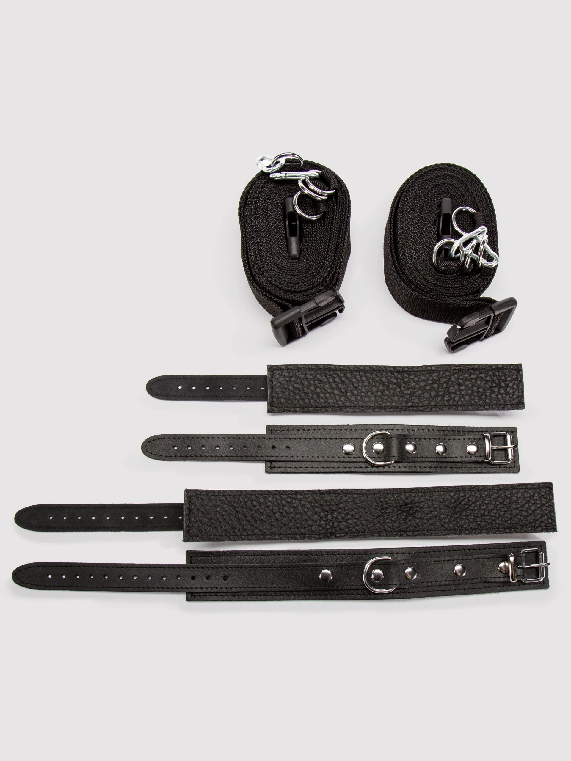 - Adjustable leather wrist and ankle cuffs offer comfortable, reliable restraint