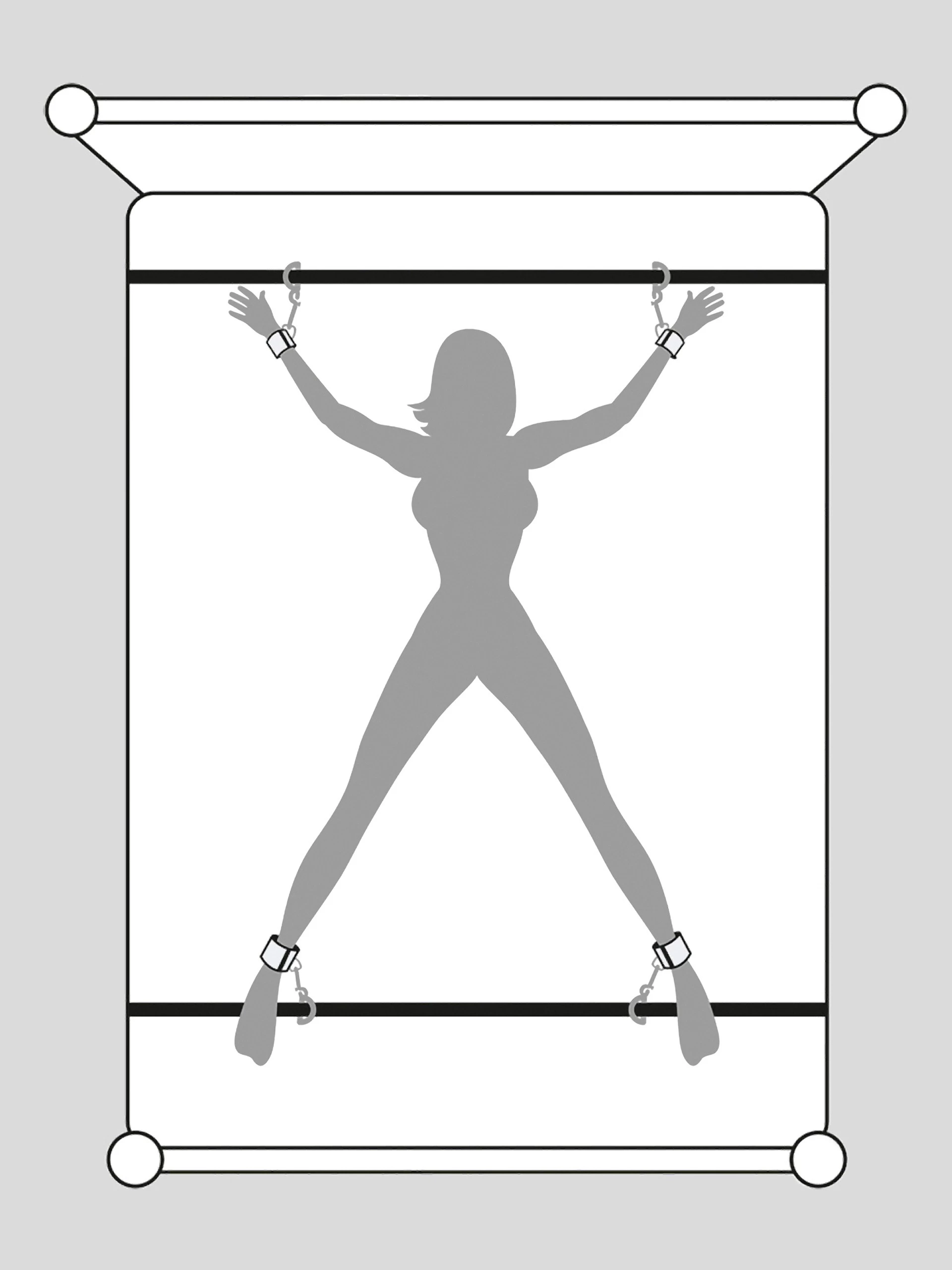 Doin’ the starfish has never been so easy (or enforced). With 2 bed loops that strap round the top and bottom of any double mattress and 4 adjustable cuffs, spread your lover’s limbs for action that will give you full access and control of their pleasure.