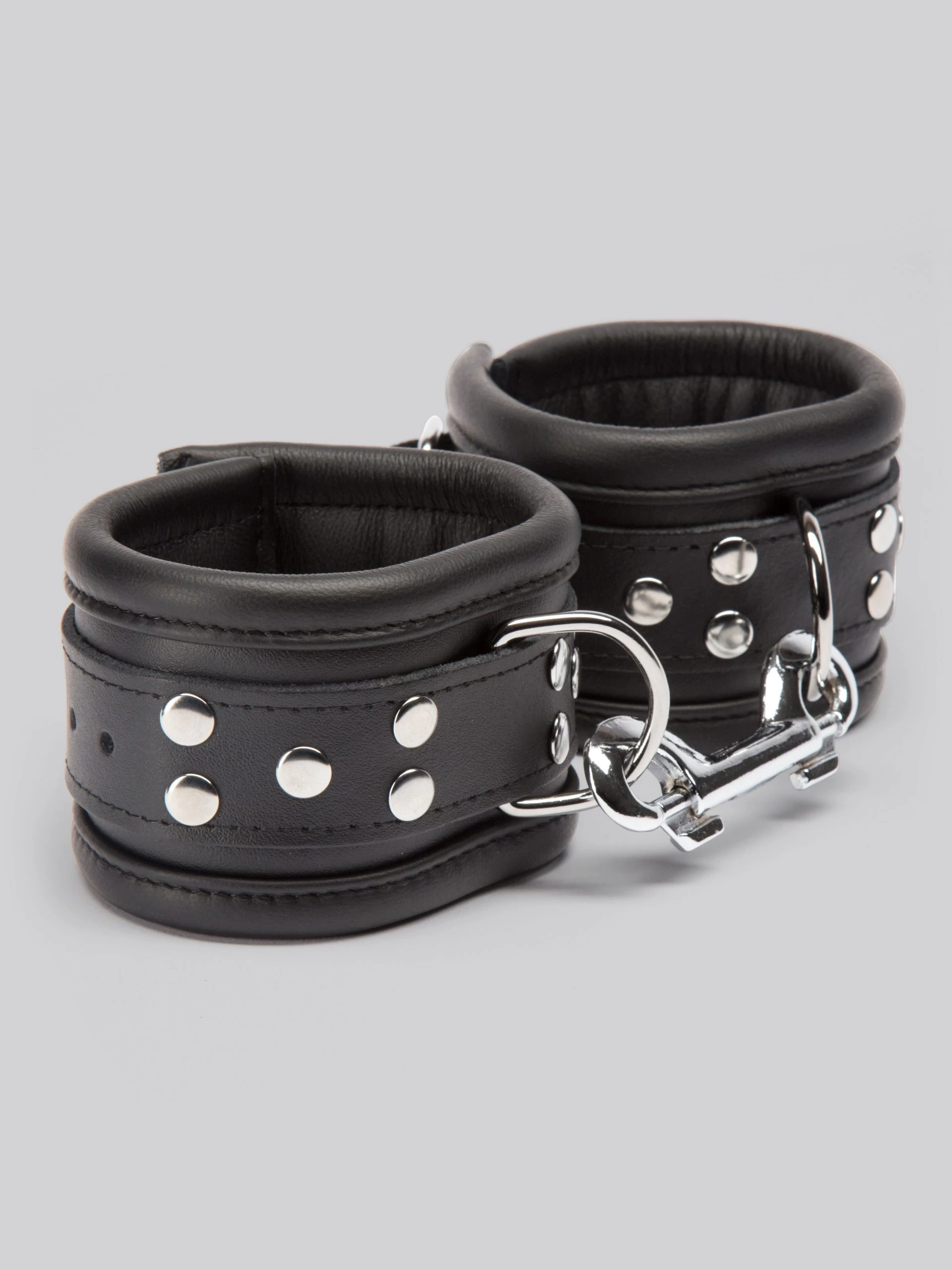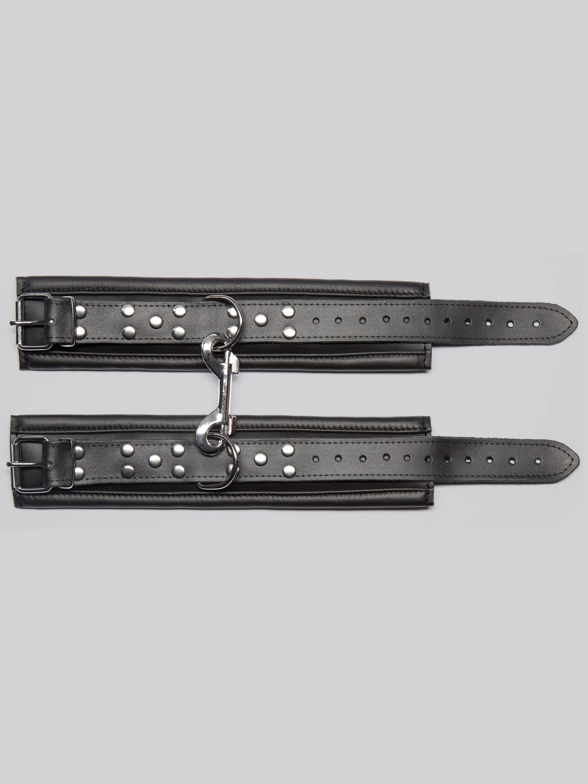 Thick, padded leather and sturdy adjustable buckle fastenings make these ankle cuffs a reliable addition to your bondage collection. Fasten the cuffs together using the quick-release clip, or attach your own restraints or leads for customised play.