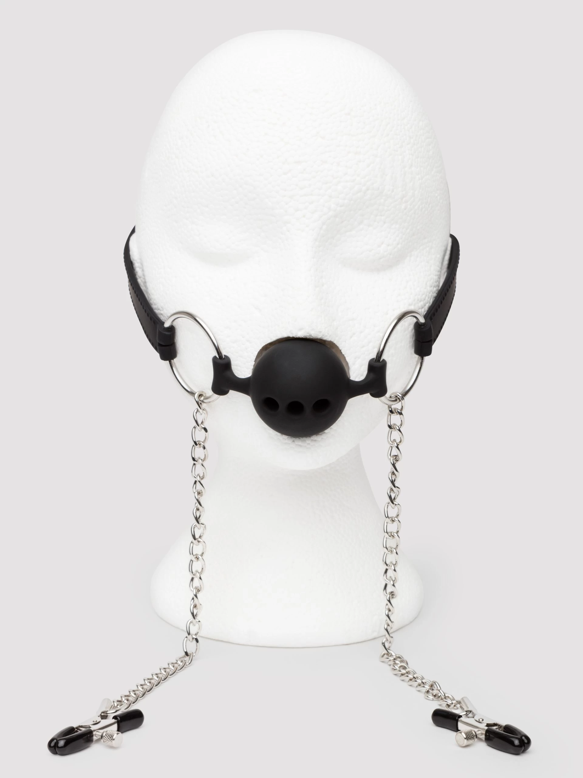 - Breathable gag with nipple clamps for advanced BDSM play