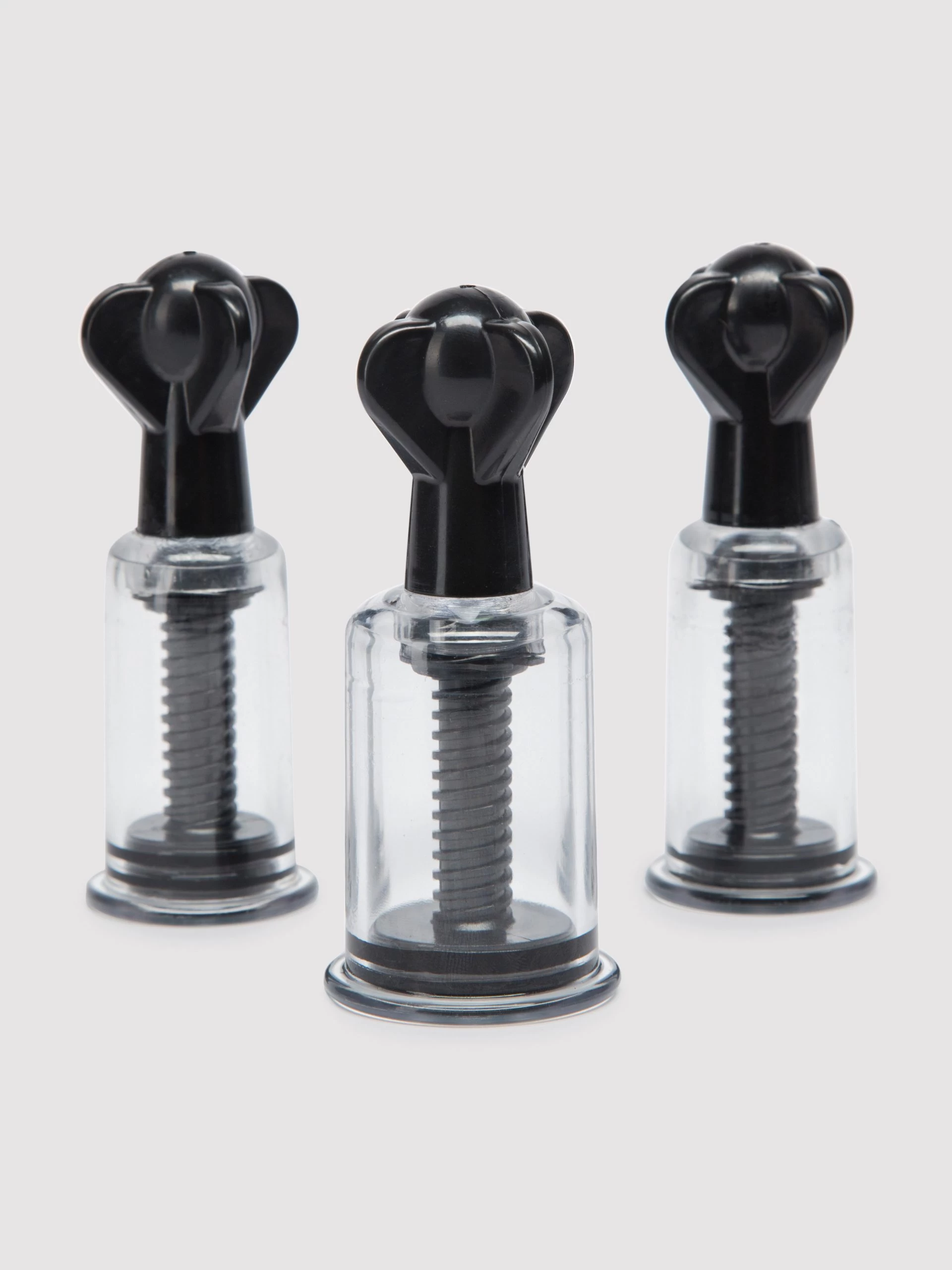 Suitable for use anywhere on the body, these 3 pumps create strong, reliable suction wherever you use them. Simply place the open ends over your nipples, clitoris or any other part you want sucked, and start twisting the top. As you twist, so the suction increases. To remove, just unwind the screw top until it comes away from your body.