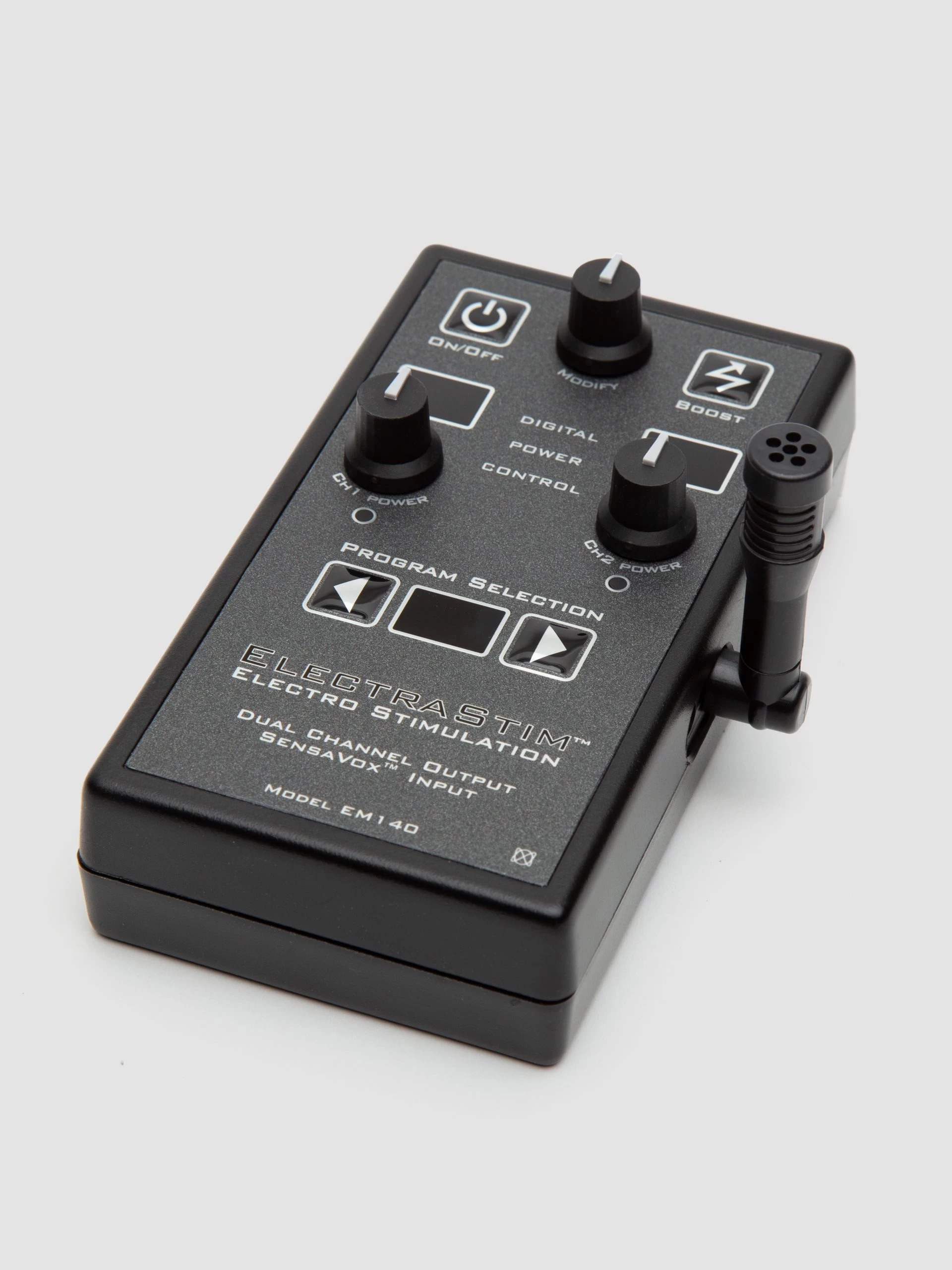 EM140 SensaVox is the ultimate in couple’s electrosex play. Dual channels with individual controls allow you to use up to four uni-polar or two bi-polar sex toys. The unit can even be controlled by music or voice and operates via plug-in or battery power.