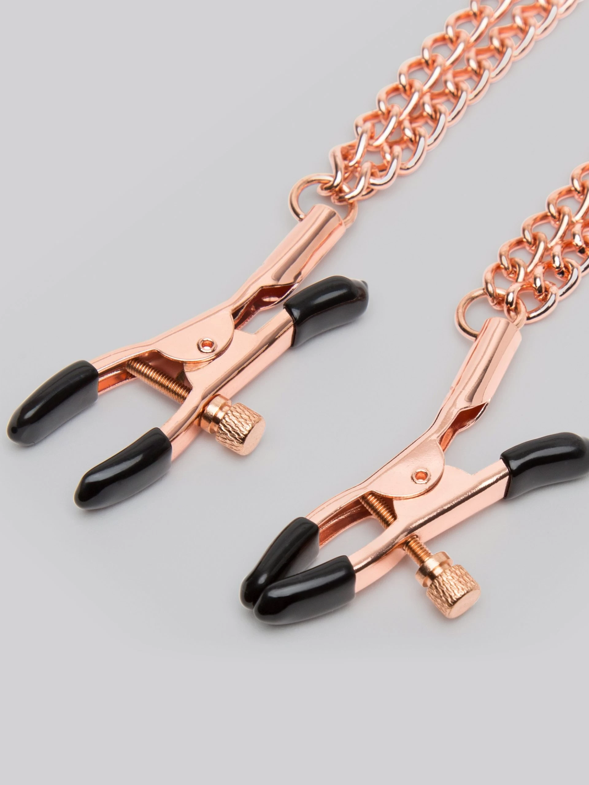 Explore sensory play with a set of stunning adjustable nipple clamps to enhance nipple sensitivity. Suitable for beginners and advanced players alike, these nickel-free clamps are fully adjustable and boast beautiful tiered metal chains for added weight.