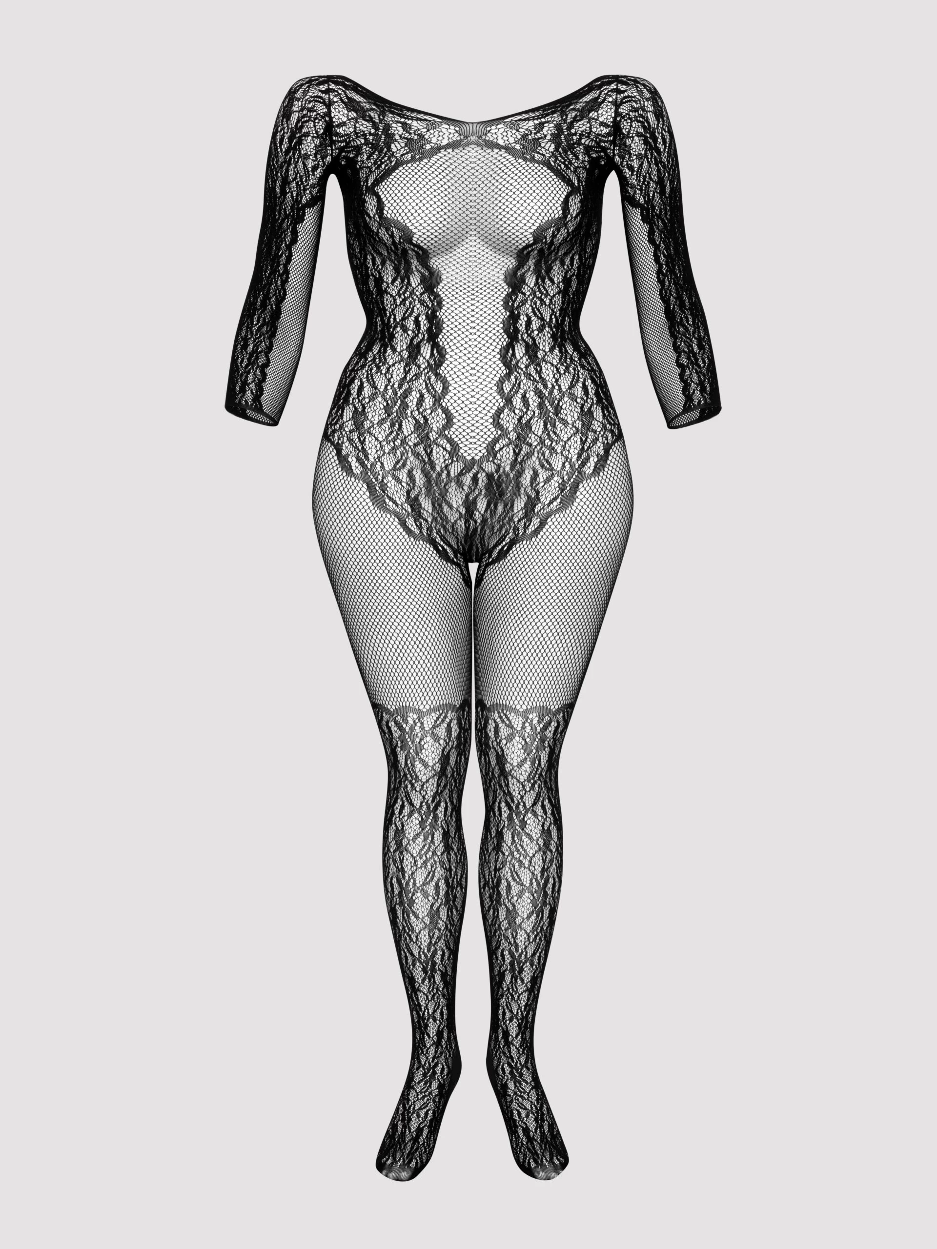 Effortless seduction is yours when you strut into the room wearing this gorgeous bodystocking. Giving you a head-to-toe look with one piece of lingerie, this lace and fishnet all-in-one flatters your shape while cut-outs to the rear really heat things up.