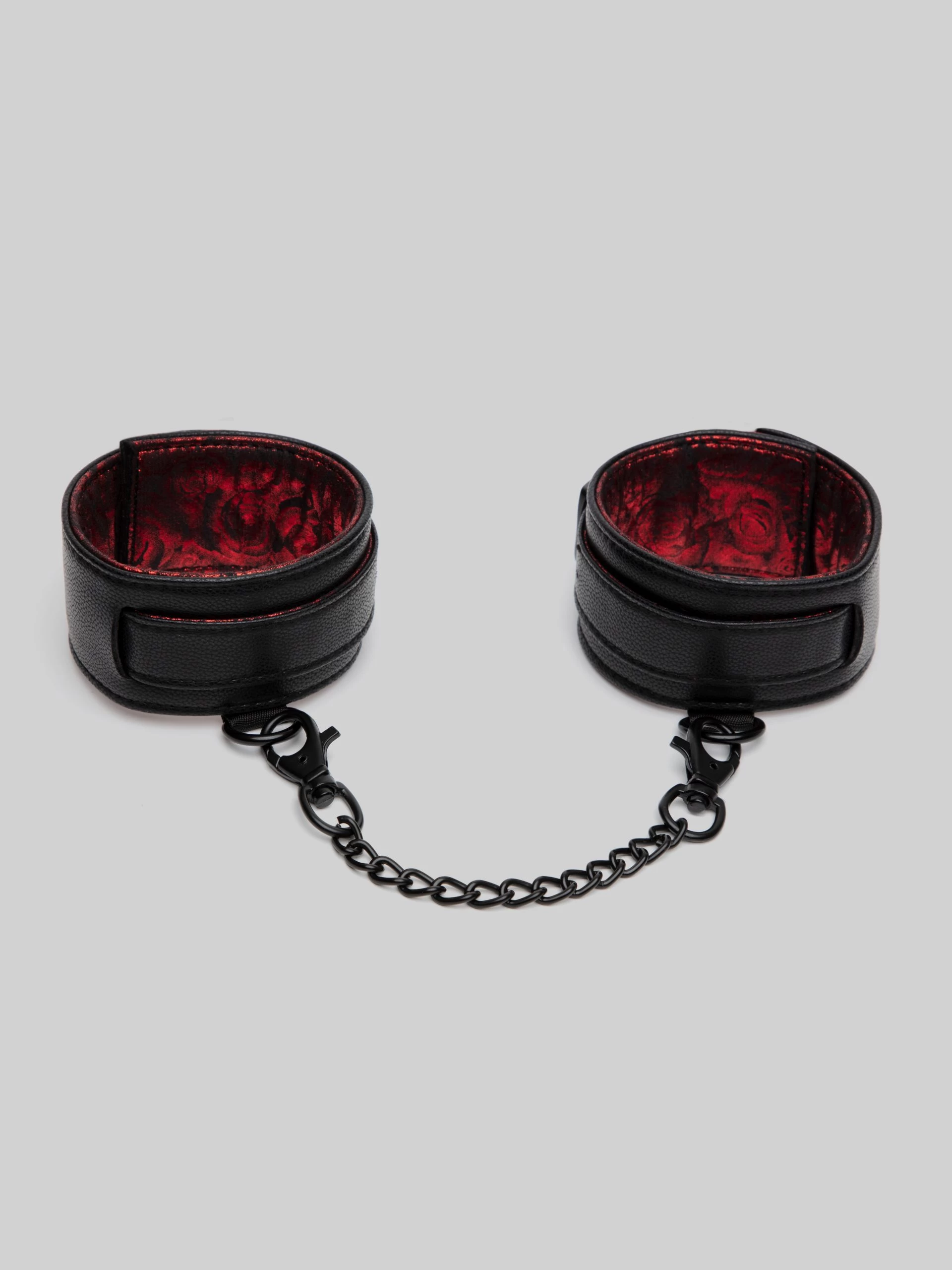 Create your own Christian and Ana mise en scène with the Sweet Anticipation Ankle Cuffs. Made with soft padding in a beautiful rose patterned, black and red colorway, they promise sensually soft but reassuringly firm restraint.