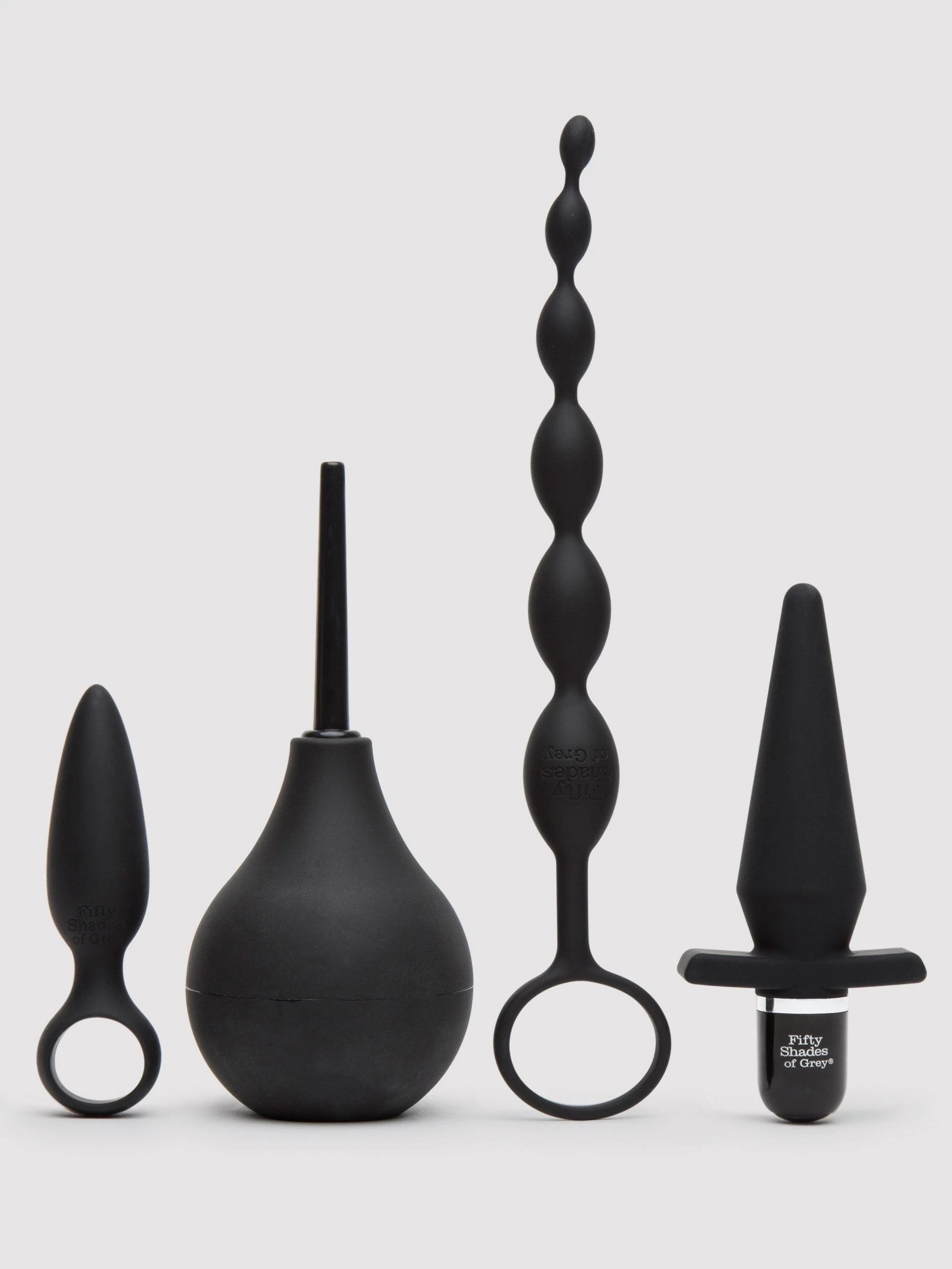 Reveal the delights of anal play with this 4 piece anal starter kit. Explore the wonderfully filling sensation from a choice of two butt plugs, one static and one vibrating, or indulge new erogenous zones with velvety silicone anal beads.