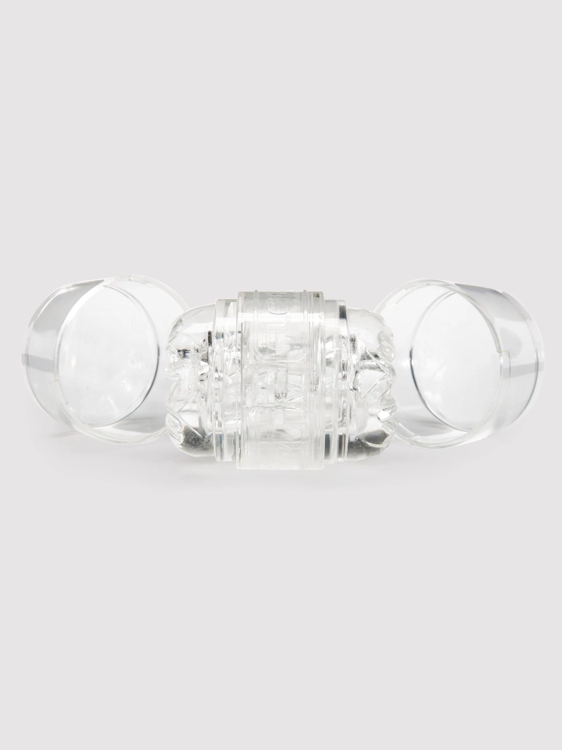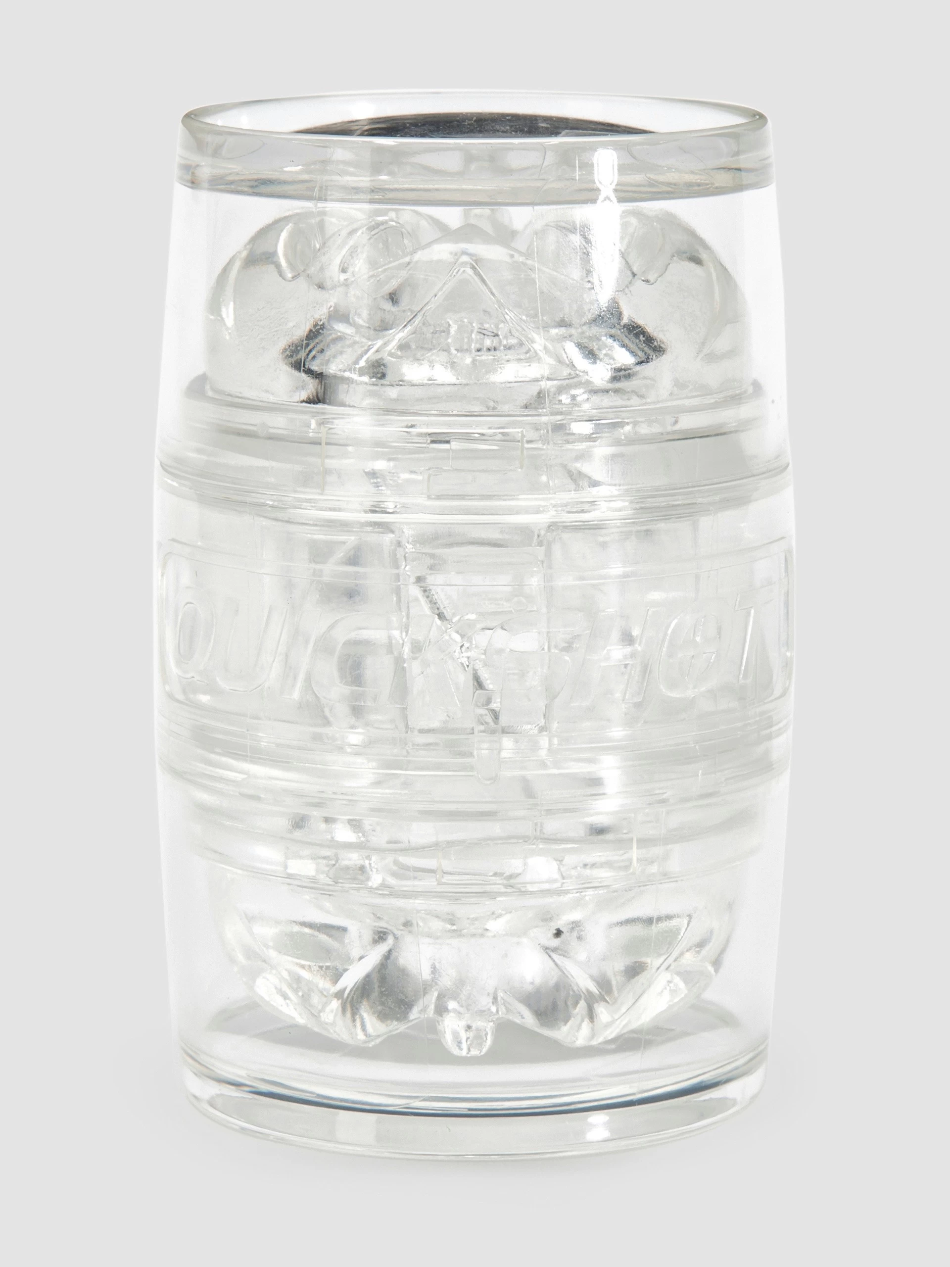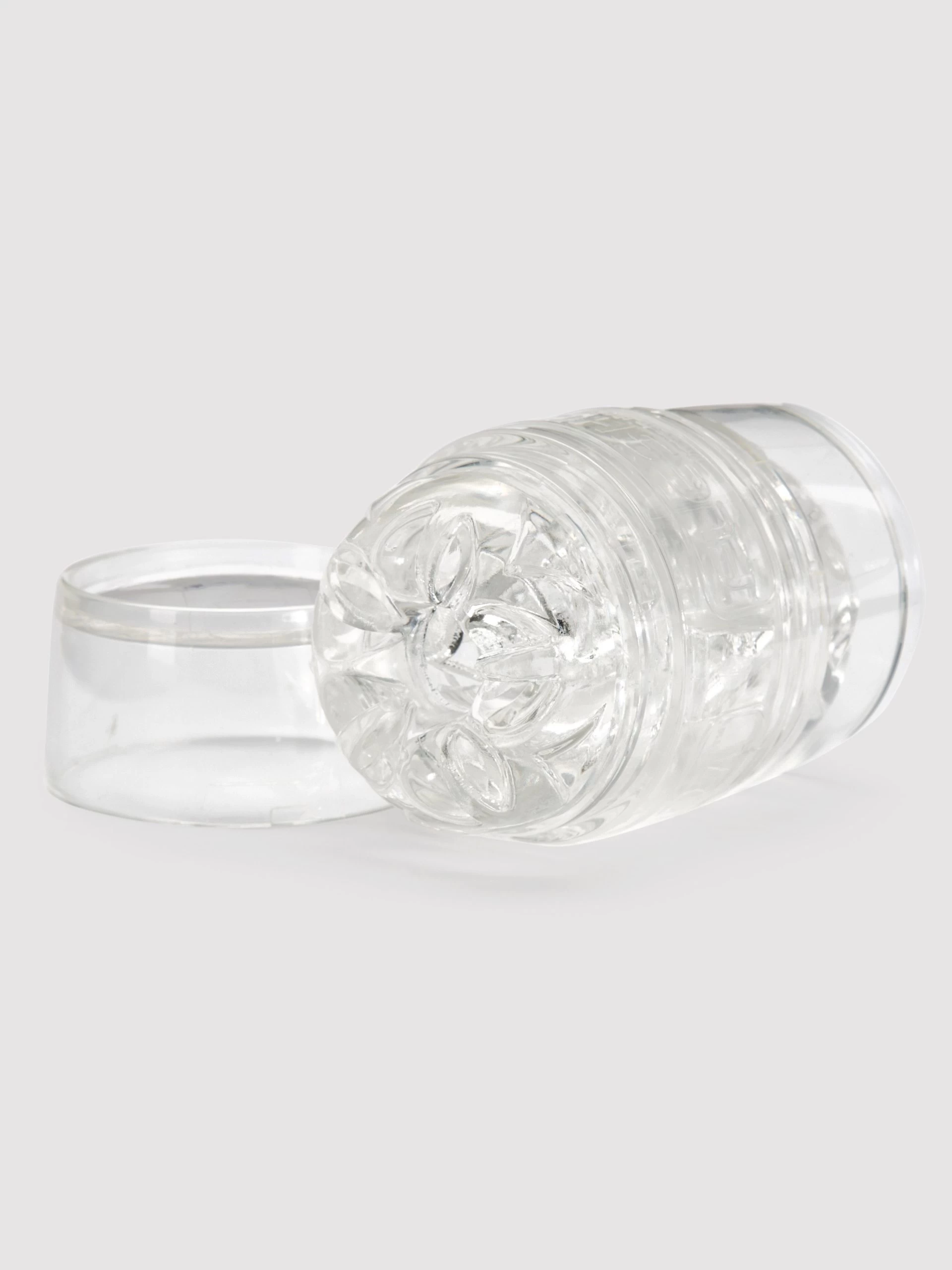 Trigger intense sensation with the turbulent SuperSkin textures of QUICKSHOT. Pioneering Fleshlight’s first dual-orifice design, the clear masturbator’s open-ended sleeve comes fluted with non-anatomical nodules and chambers for potent stimulation.