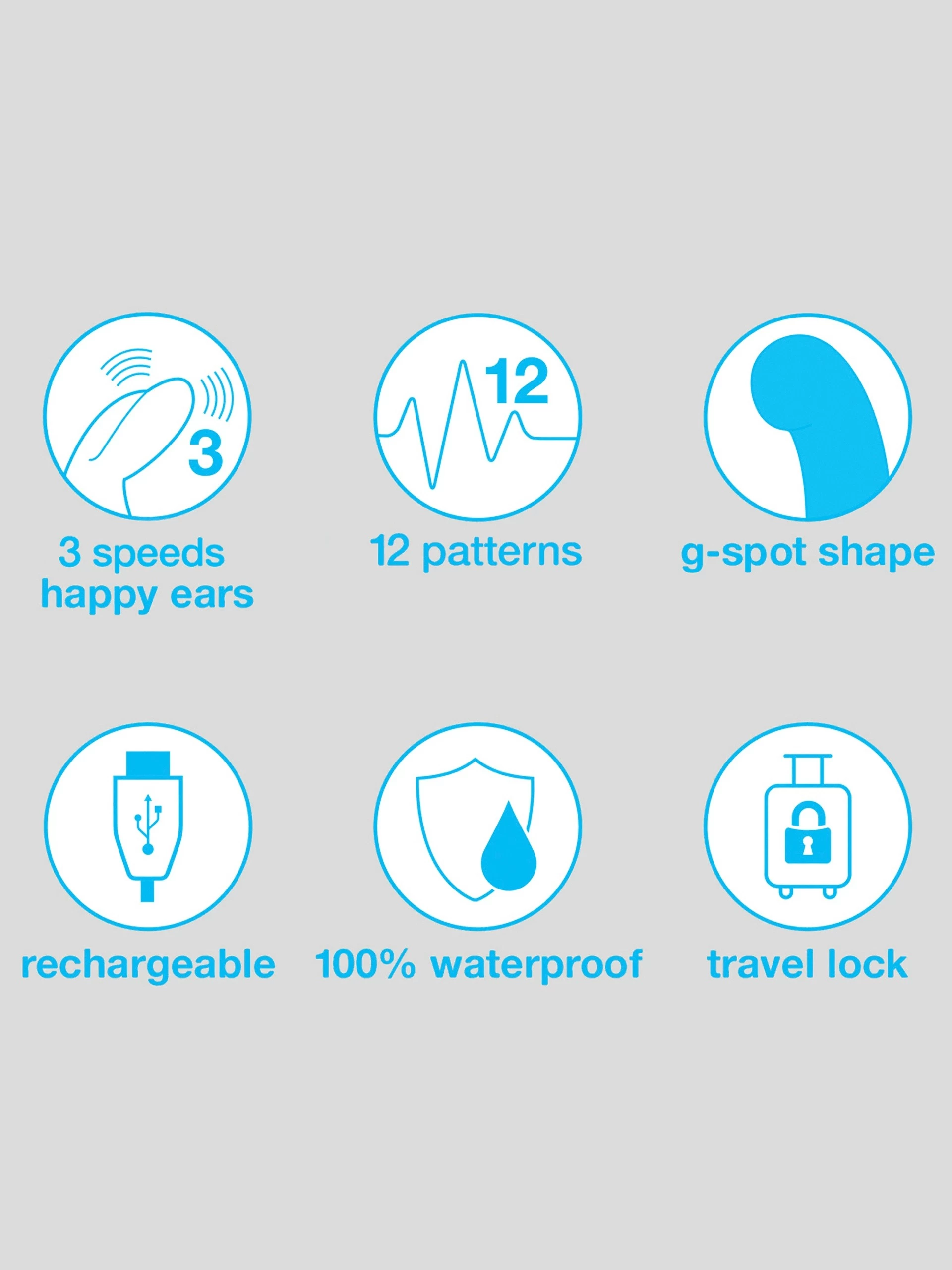 happy rabbit® G-Spot’s vital function stats: Ears: 3 x speeds; Shaft: 3 x speeds, 9 x patterns.