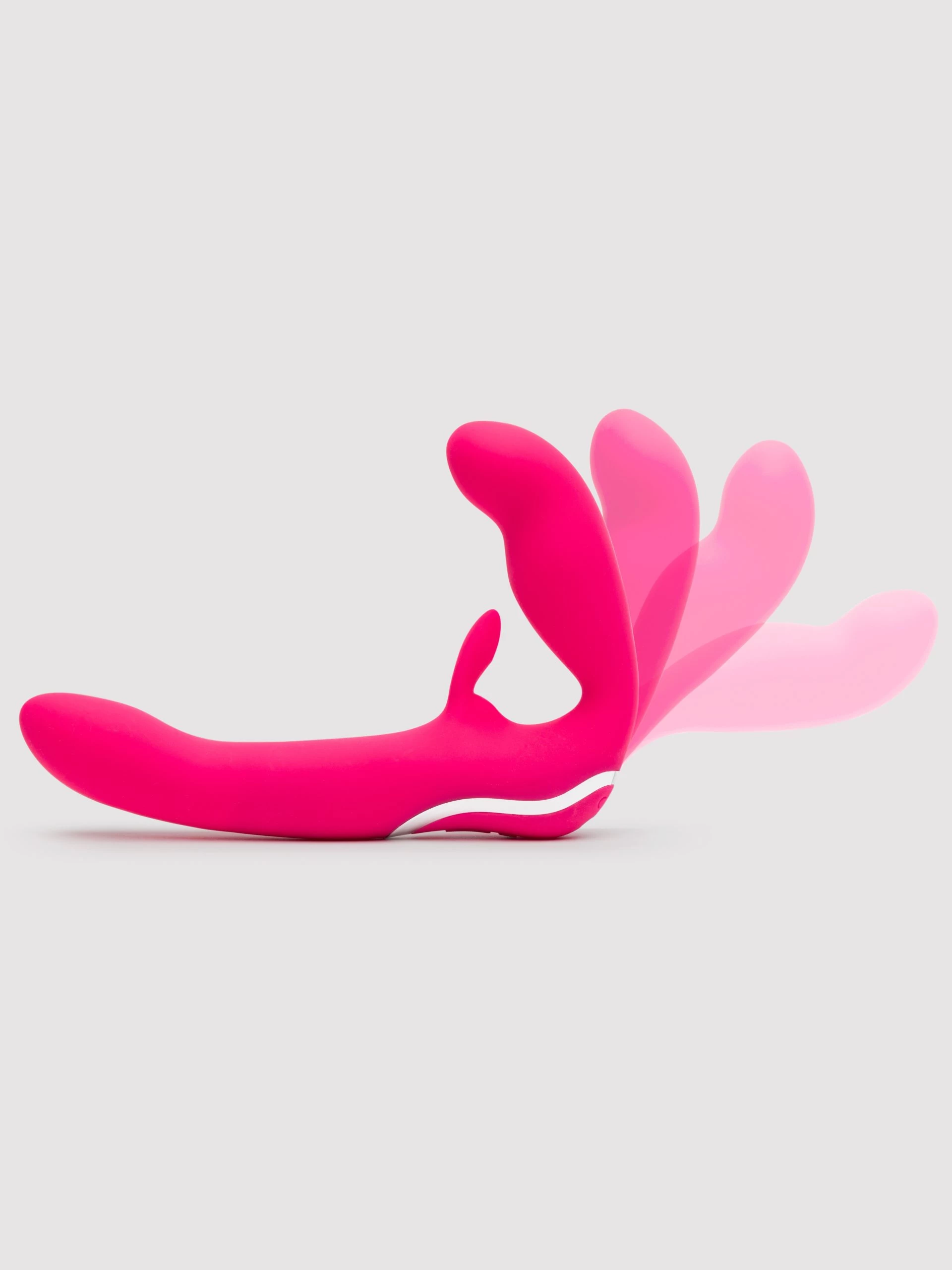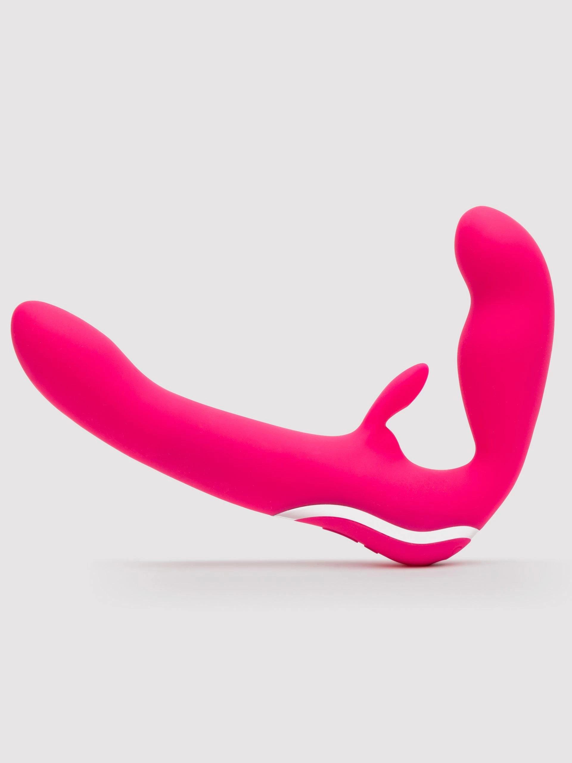 Tumble down the rabbit hole with your lover and explore the unbelievable intimacy of our happy rabbit® strapless strap-on. Enjoy strong vibrations for two with 12 tempting vibration modes in the slim penetrative shaft and 3 satisfying speeds in the pony.