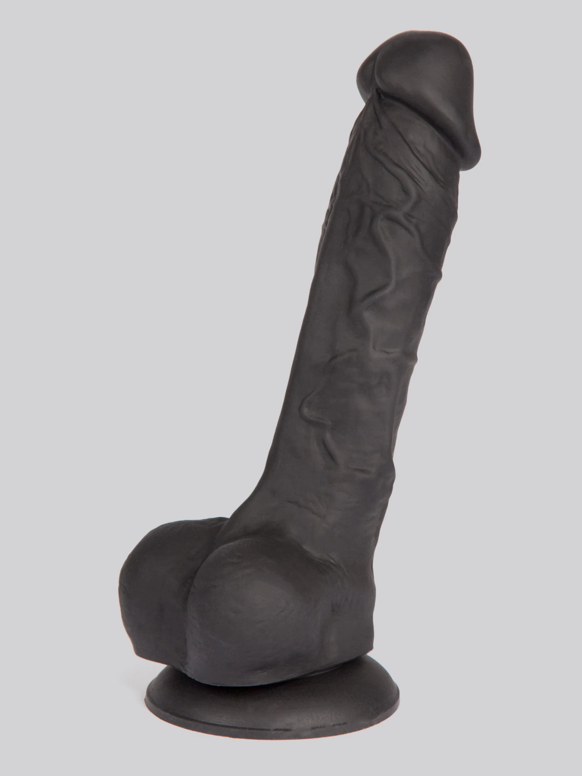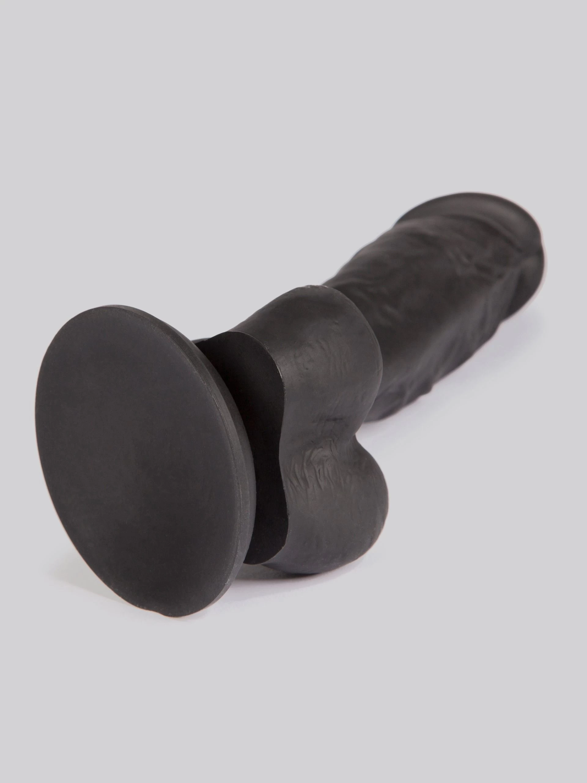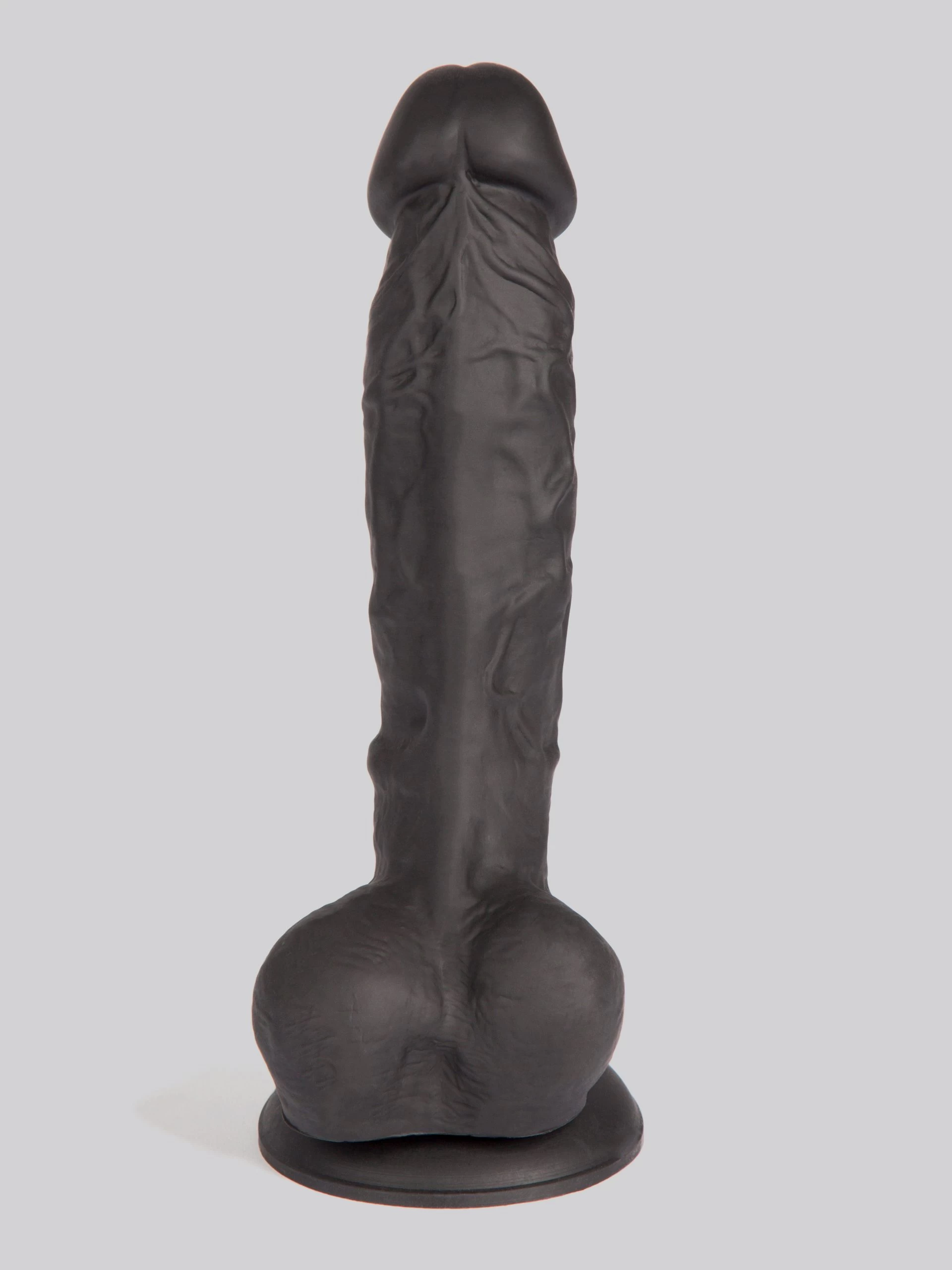 My oh my, this is one impressive big black dildo. Standing magnificently erect on top of its swollen balls, its firm, erect shaft is throbbing with veins that lead all the way up to a proud, bulbous head. With a suction cup base for play options aplenty.