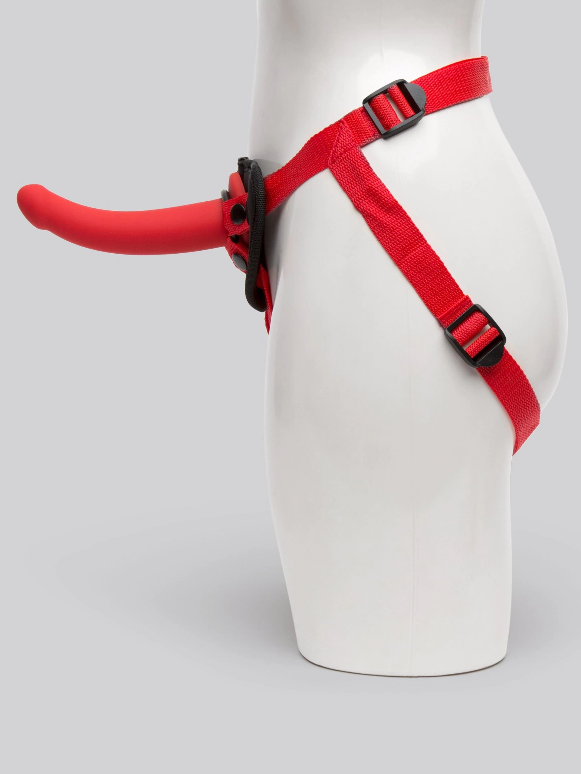 Get ready for a red-hot romp with this strap-on kit, including an adjustable harness with two supple silicone suction cup dildos. Choose from a ridged black 5-incher and a smooth red 7-incher, both shaped for G-spot or P-spot play.