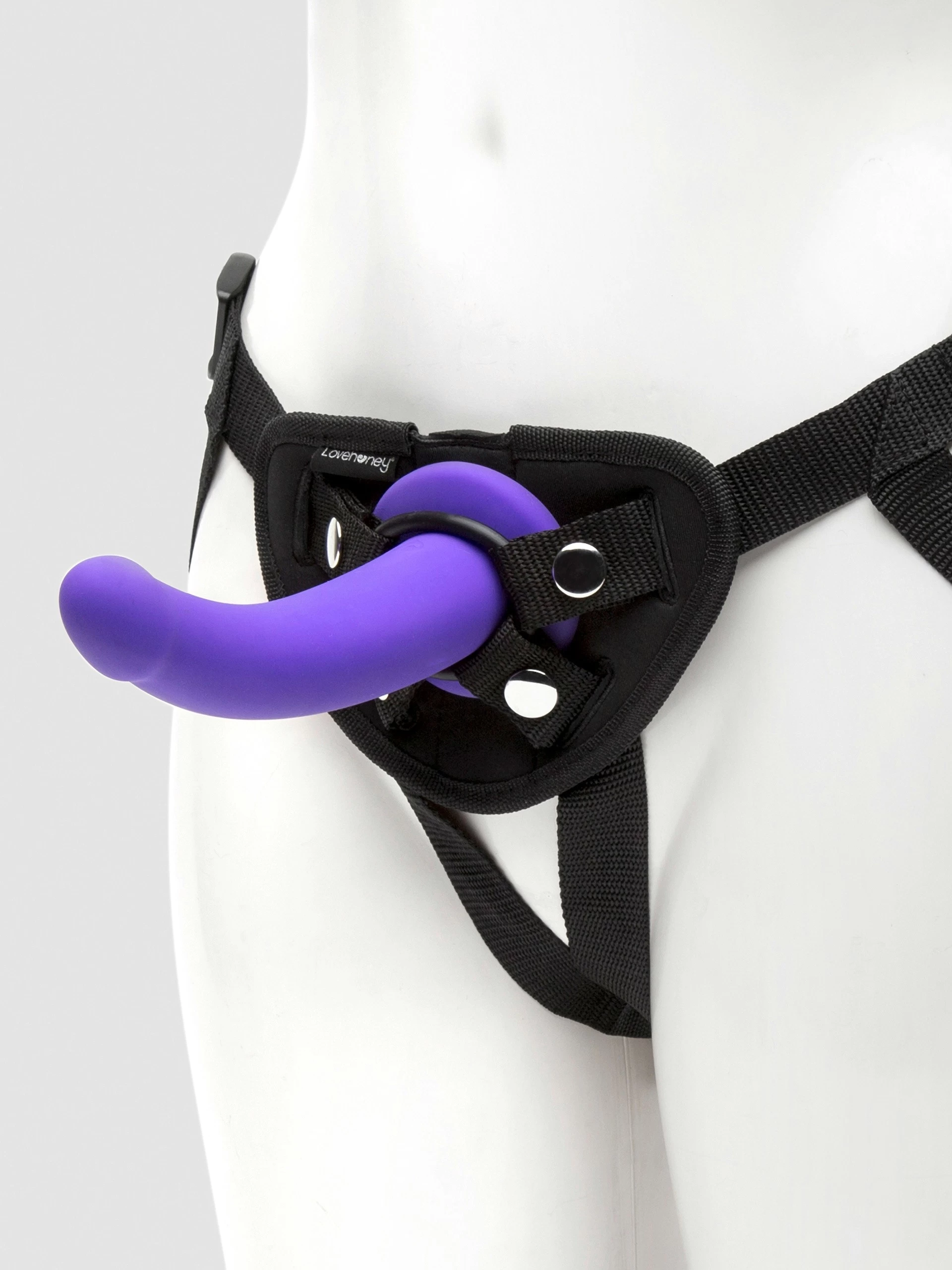 Simply fasten the adjustable harness around your hips and legs for comfort and security during your strap-on play, and attach the smooth and firm dildo. 7 inches in length with a curved shaft, the silicone dildo is the perfect size and shape for G-spot or P-spot stimulation.