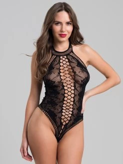 The teddy is stretchy and sheer, hugging your body and emphasising your curves. While the halterneck design flatters your upper body, the high cut on the leg shows off your glorious butt.