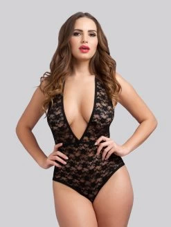 - Sexy black lace body with plunging neckline to accentuate your curves in the bedroom