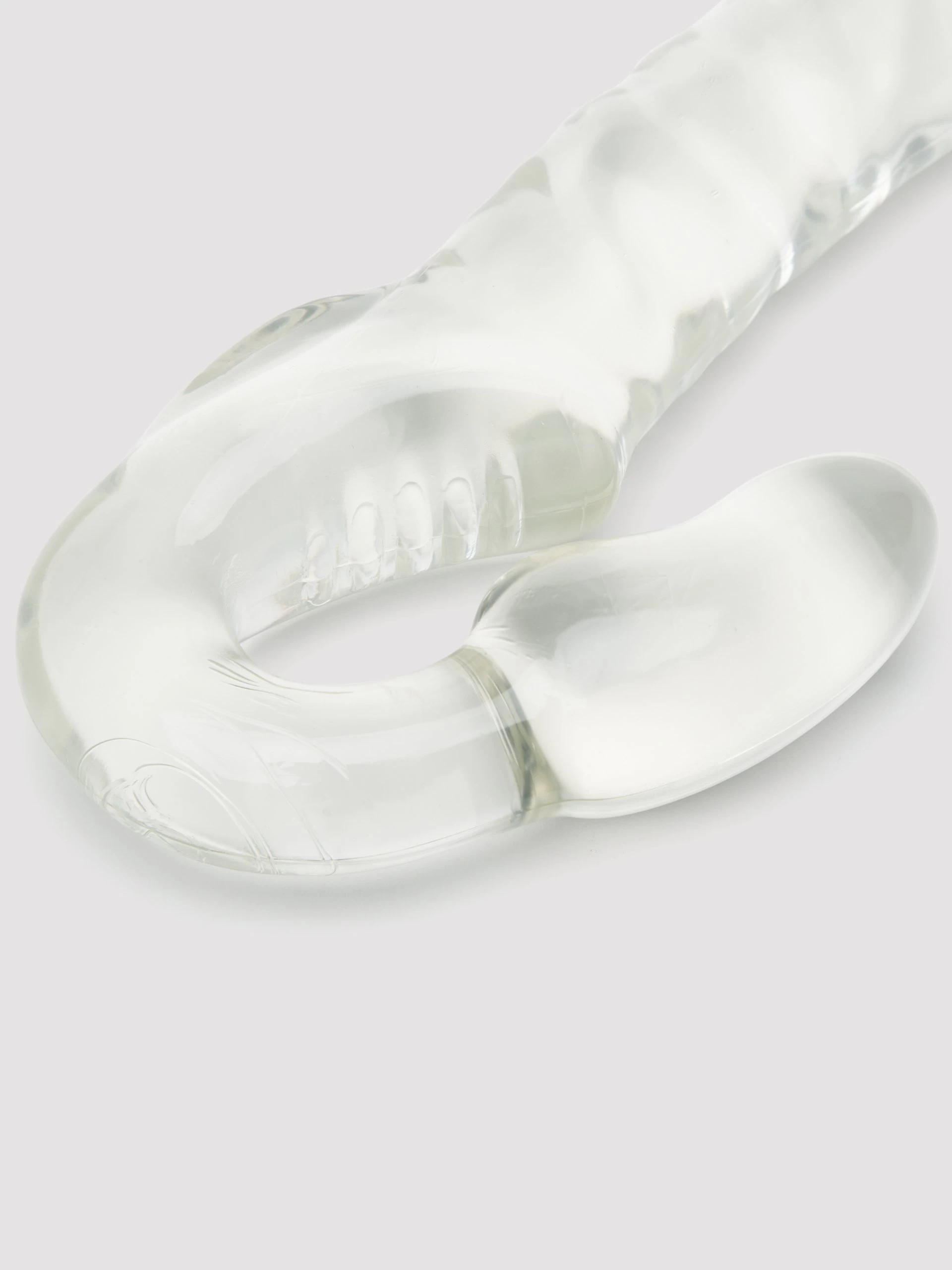 Indulge in some 2-for-1 prime-time entertainment with the Double Feature strapless strap-on. While the shorter shaft massages the wearer’s G-spot, the receiver enjoys 7 curved, rippled inches. Perfect for pegging and penetration play minus the harness.