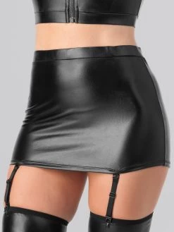 - Super-sexy wet look skirt with garter straps for a provocative bedroom look