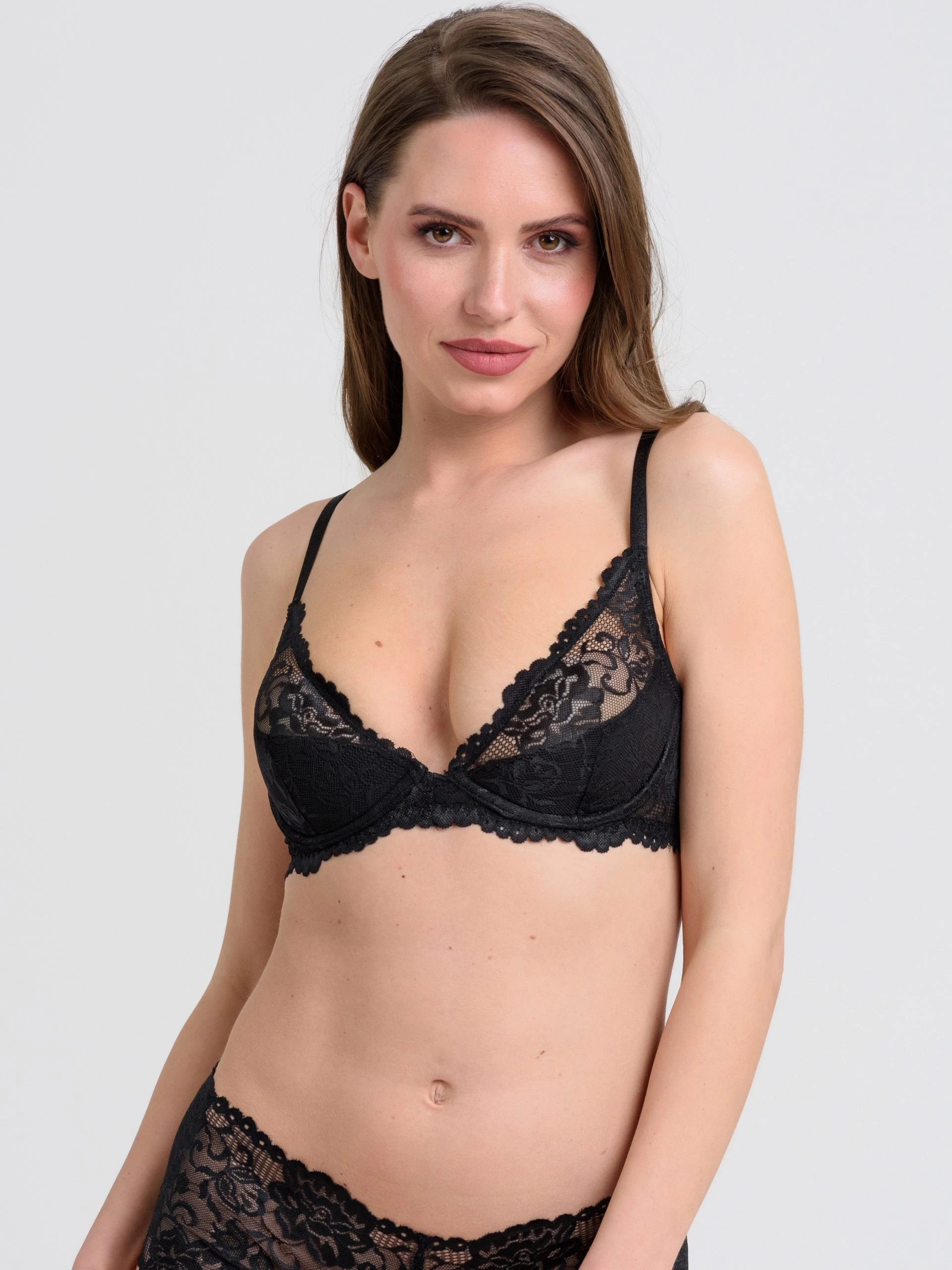 Banish those boring black T-shirt bras and give your everyday lingerie a seductive makeover with our Flirty plunge bra. Underwired and partially padded for gentle lift and support, the soft stretchy lace is super comfy (and sheer for added sex appeal).