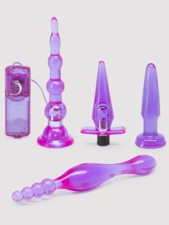 - Kit with a butt plug, probe, vibrating anal beads and a vibrating butt plug for first-time anal play
