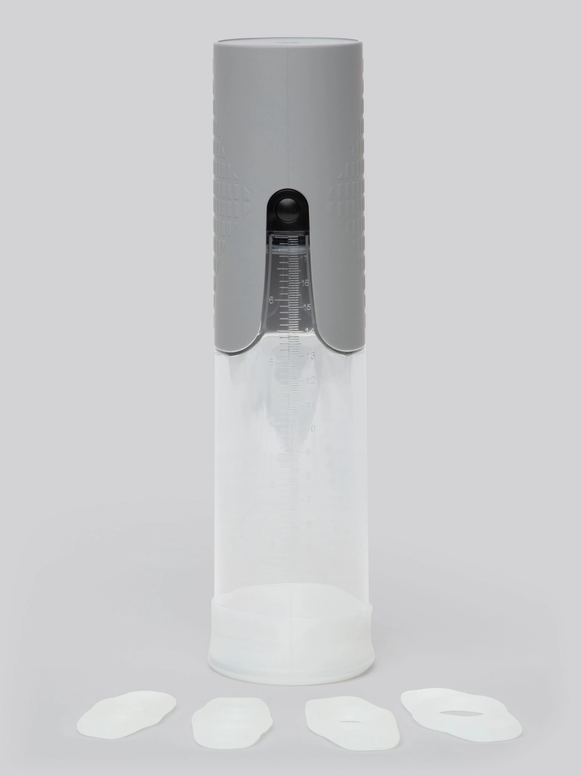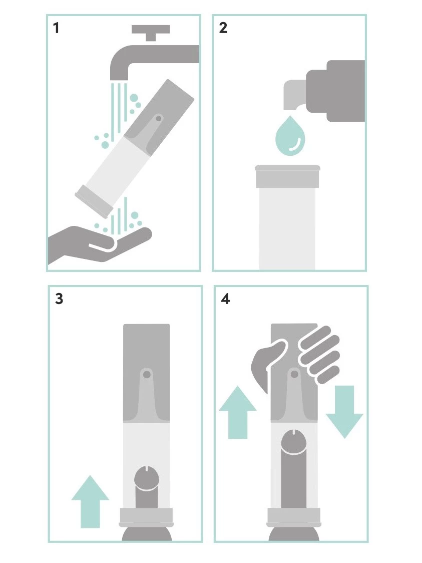Work towards a potential increase in the size and strength of your erection with this all-in-one penis pump. Easy to use, simply lubricate yourself and the pump’s entrance, slide inside, and use the textured grip to increase suction in the chamber.