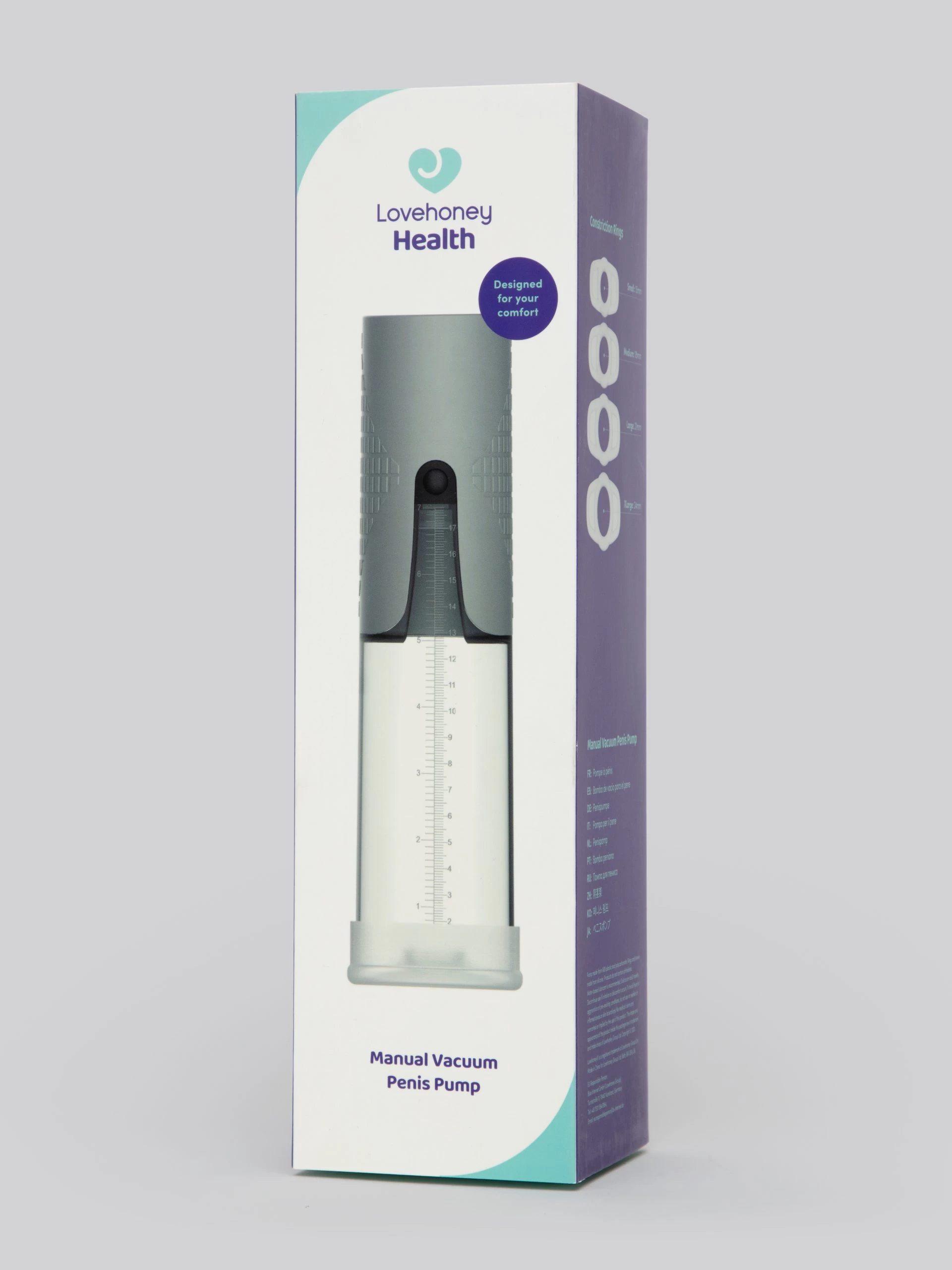 - 4 stretchy silicone constriction rings included to help prolong your pumped erection