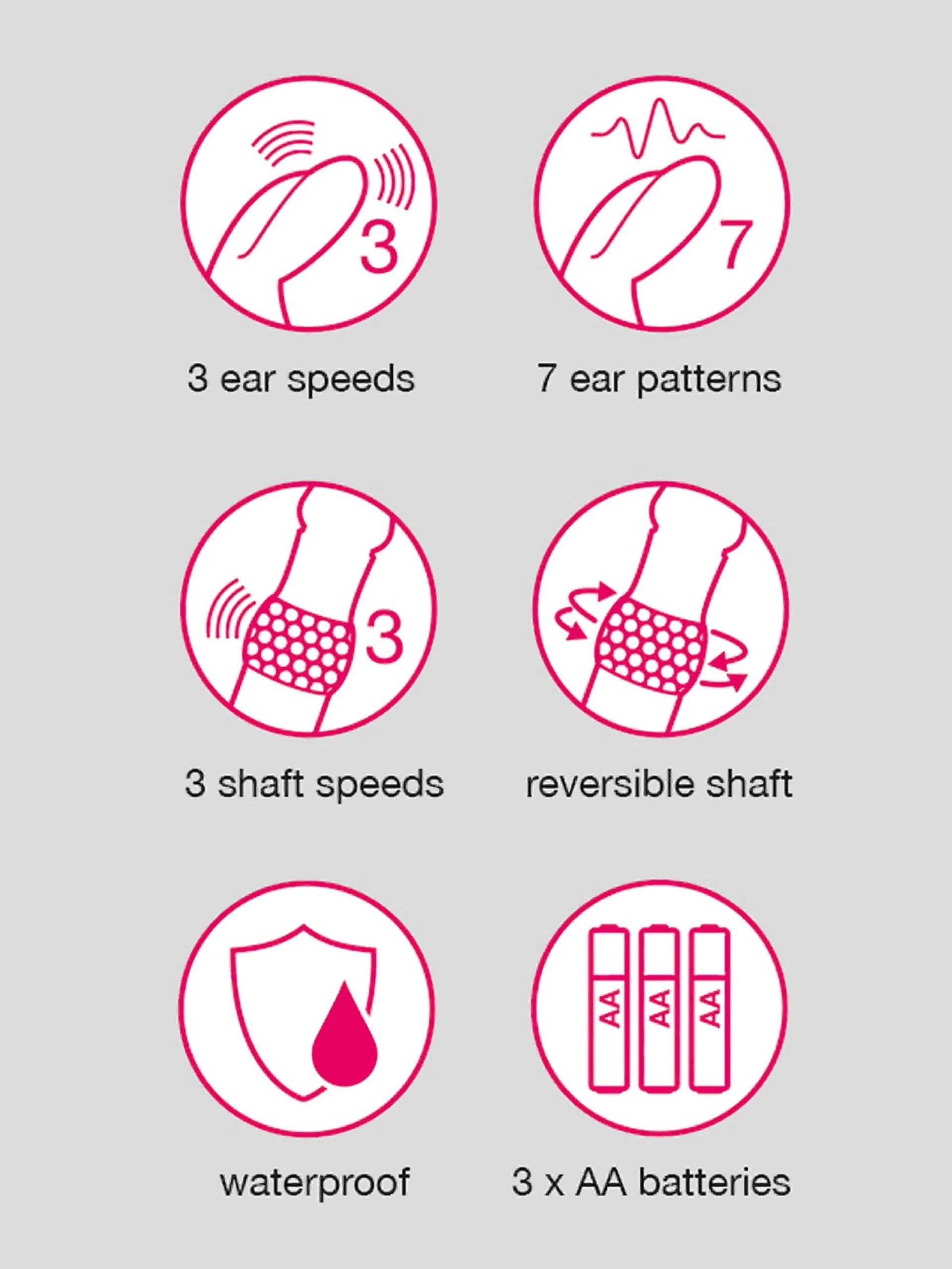 - Ears boast 3 speeds and 7 patterns for tailored clitoral stimulation