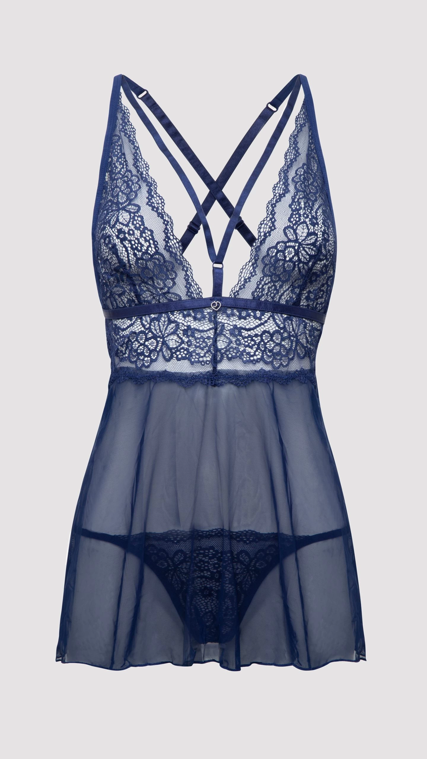 Arouse wild desires in this deep blue babydoll from our effortlessly sensual Late Night Liaison collection. From its plunging lace cups and shimmering straps, to its floaty sheer skirt for that extra-sexy glimpse, don’t expect to get a wink of sleep.
