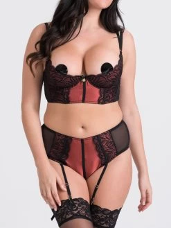 Echoing the detail of the bra, the matching crotchless panties feature a cheeky open-back that shows off your pert behind, while the removable garter straps can be easily clipped to your favorite pair of stockings, and adjusted for a figure-loving fit.