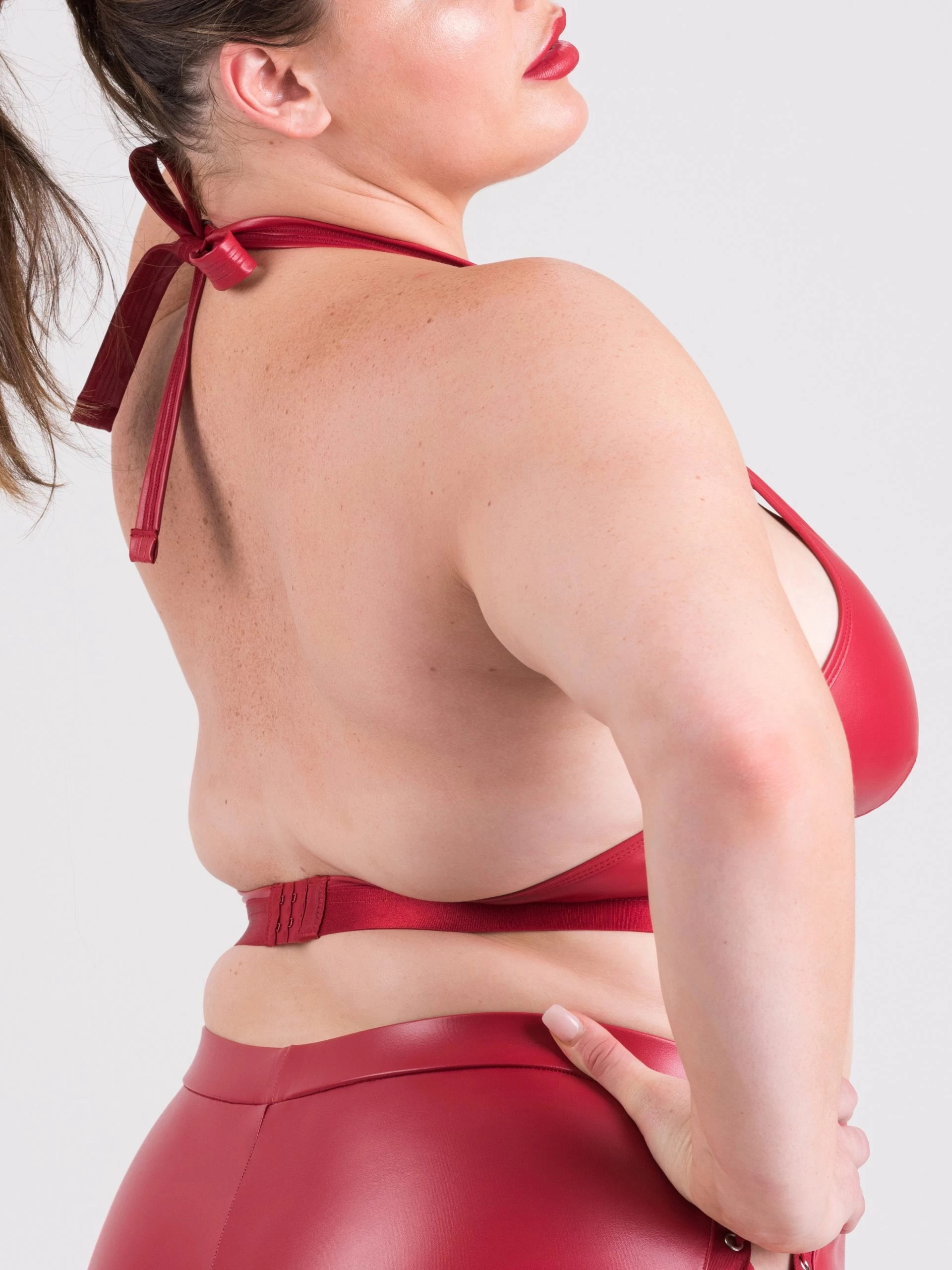 Embrace the power of your sexuality with our Fierce leather look, lace-up bra. Made from faux leather with lace-up and metal eyelet detailing, a halterneck tie and open cups, it’s all you need to make eyes pop and jaws drop.
