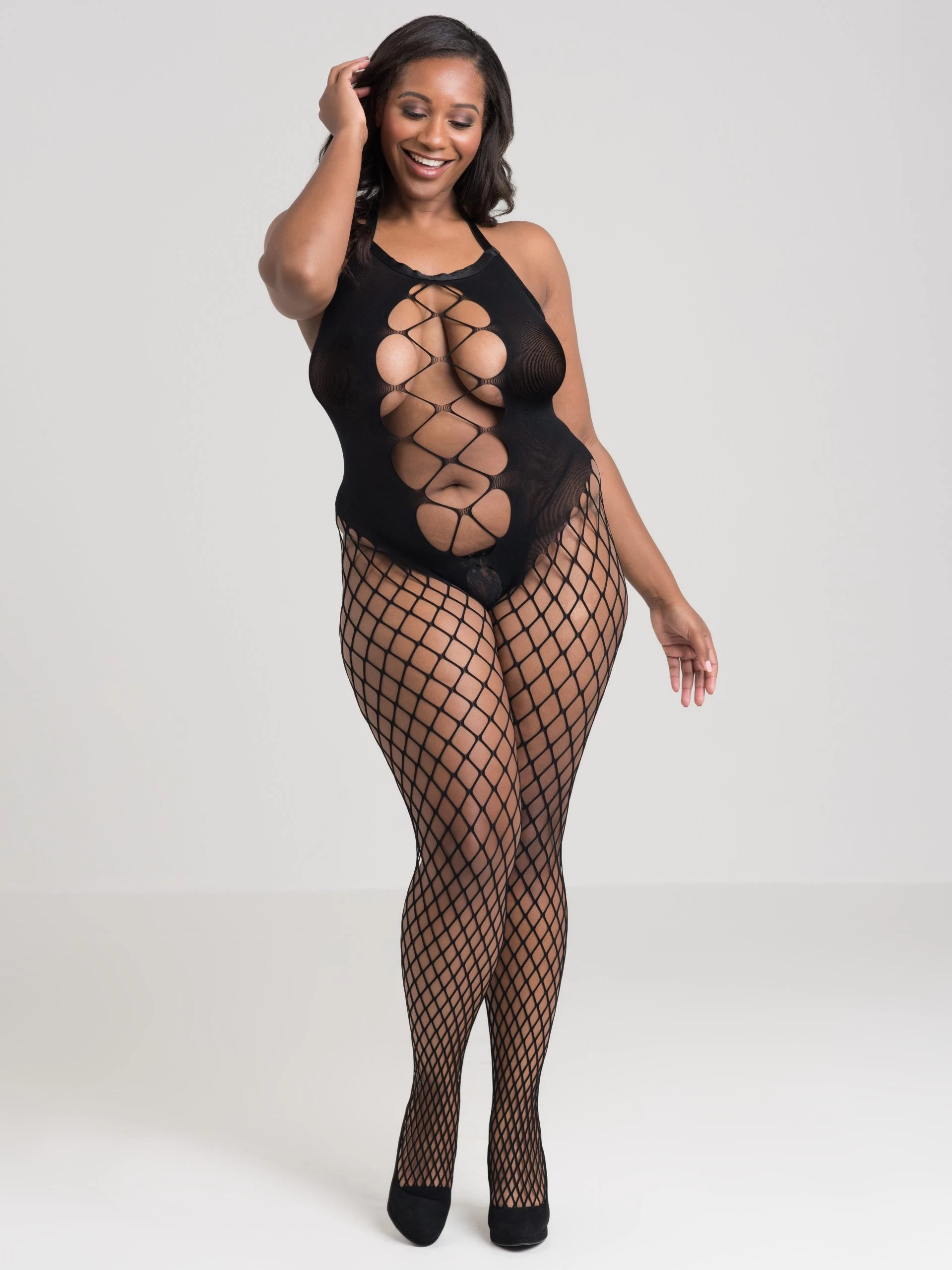 Criss-cross ‘sexy’ off your list with a super-stretchy bodystocking that hugs your body in all the right places. This all-in-one features a boob-revealing criss-cross-front body, fishnet pantyhose and an open crotch for thrilling intimate access.