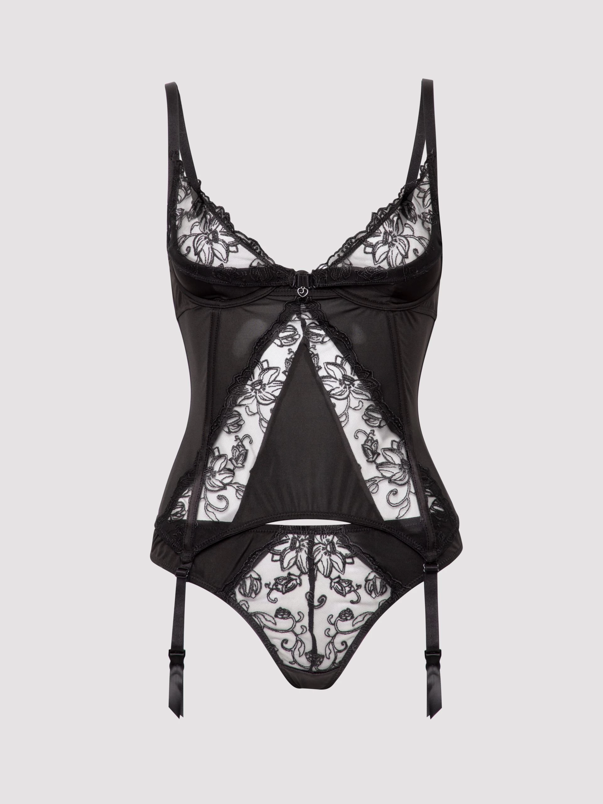 ‘Basque’ in the glory of your gorgeousness with this saucy set from our Lotus collection. Featuring removable panels that reveal your nipples (who doesn’t love a magic trick?) and sheer detail, this classically sexy set puts your hot bod centre stage. Abraca-fab-ra!