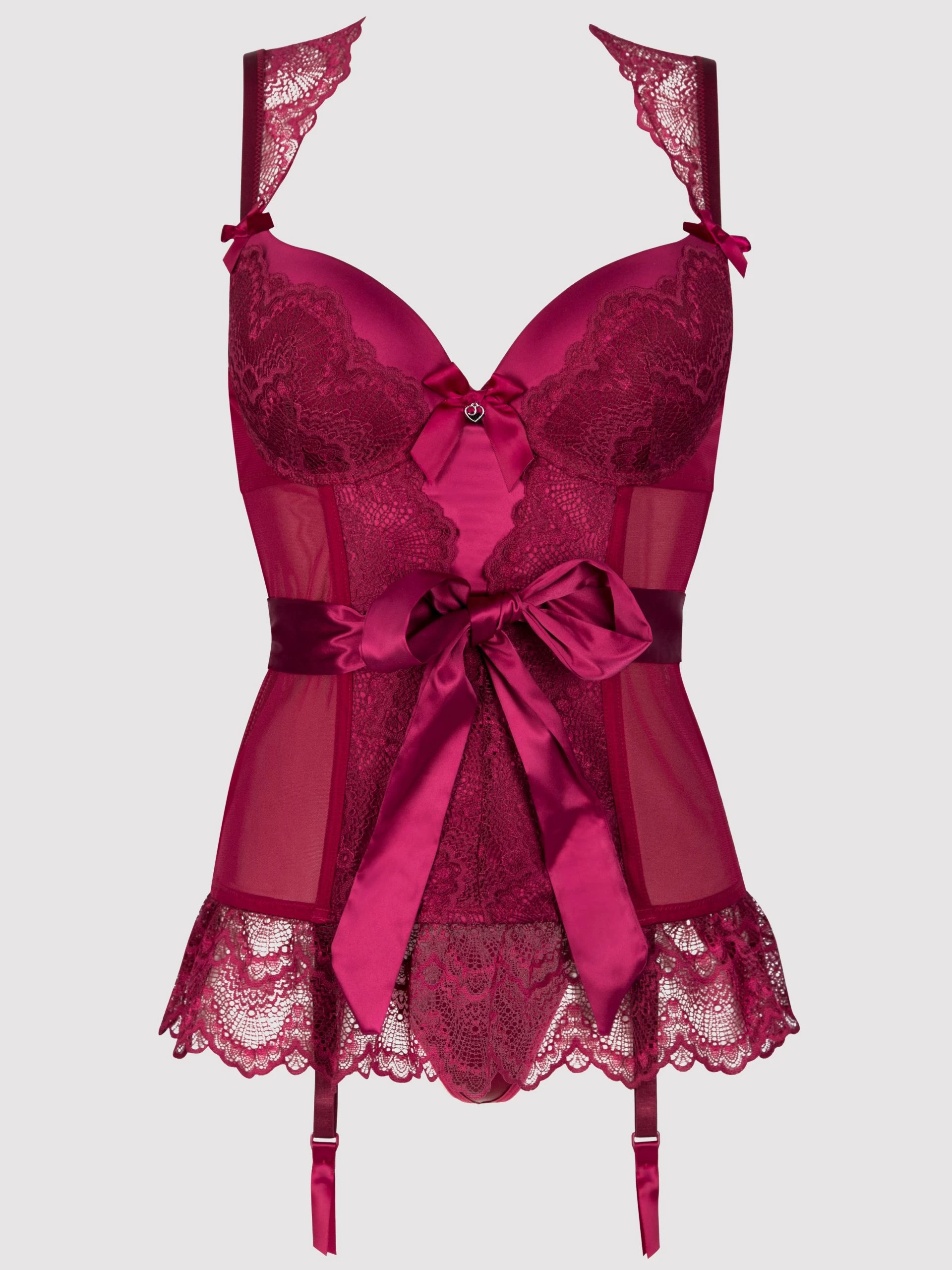 Like a glass of the finest claret, the luxurious wine-colored Moonlight basque set is the essential accompaniment to a night of indulgence and excess. Wrapping your body in satin, seductively sheer mesh and ornate lace, it’s both sophisticated and sexy.