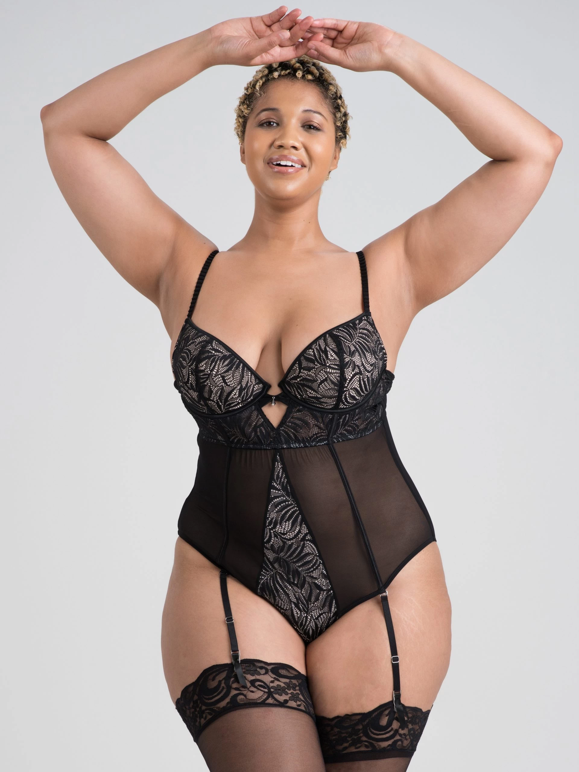 Be the belle of the boudoir with this gorgeous teddy from our Parisienne Charm collection. A beguiling blend of sheer mesh and fern-patterned lace with underwired cups, garter straps and hook-and-eye fastenings, it’s both supportive and seductive.
