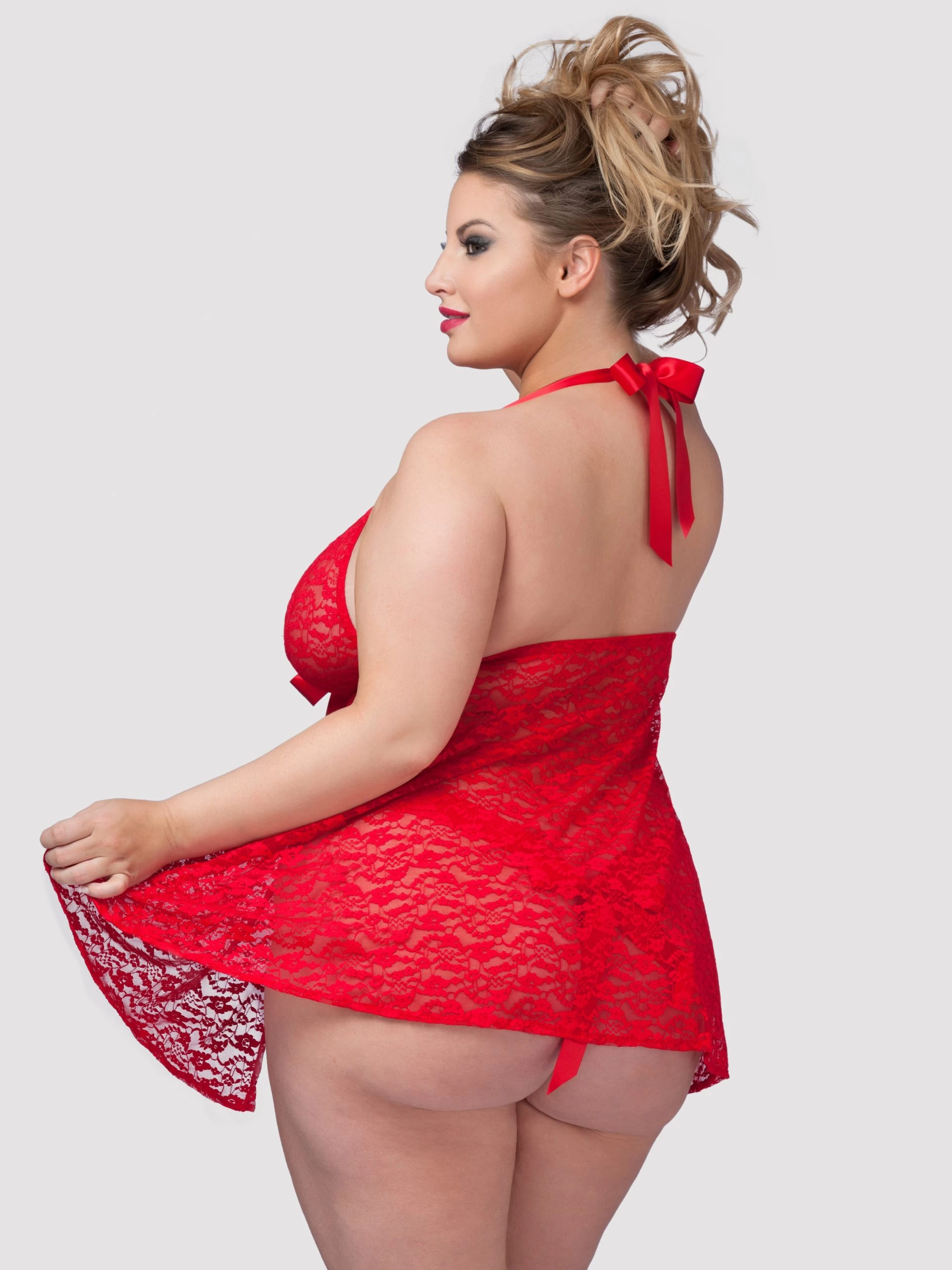 - Sexy red plus size lace babydoll with satin ties for an easy reveal