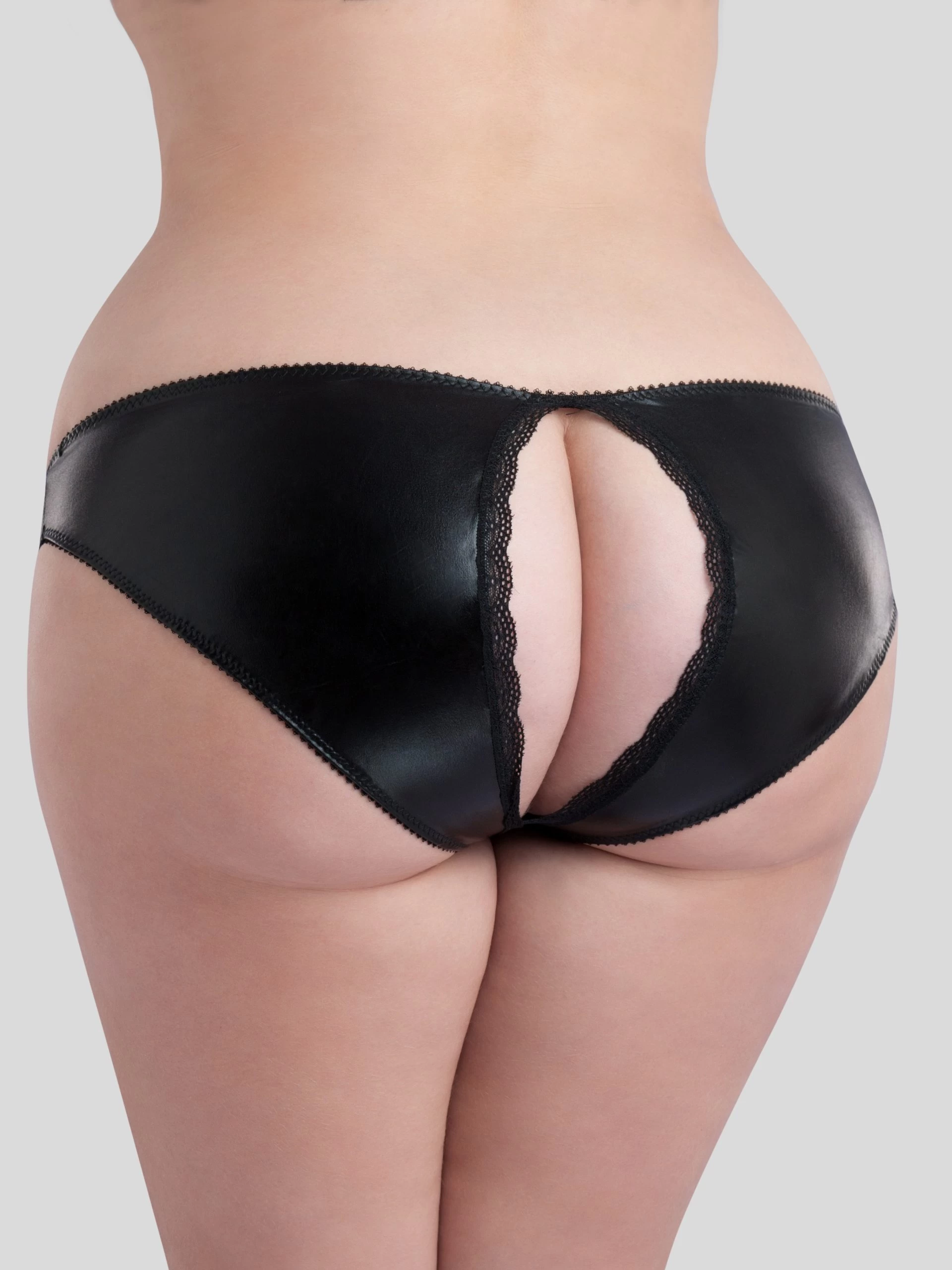 - Plus size wet look briefs with open back and crotch for a kinky lingerie look