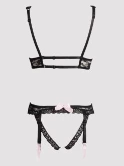 You can stop your search for the perfect stockings, garters and bra set right here, because this devastating bodystocking has it all. A tank-style top with a plunging neckline shows off your curves, and is finished with attached garters and stockings.