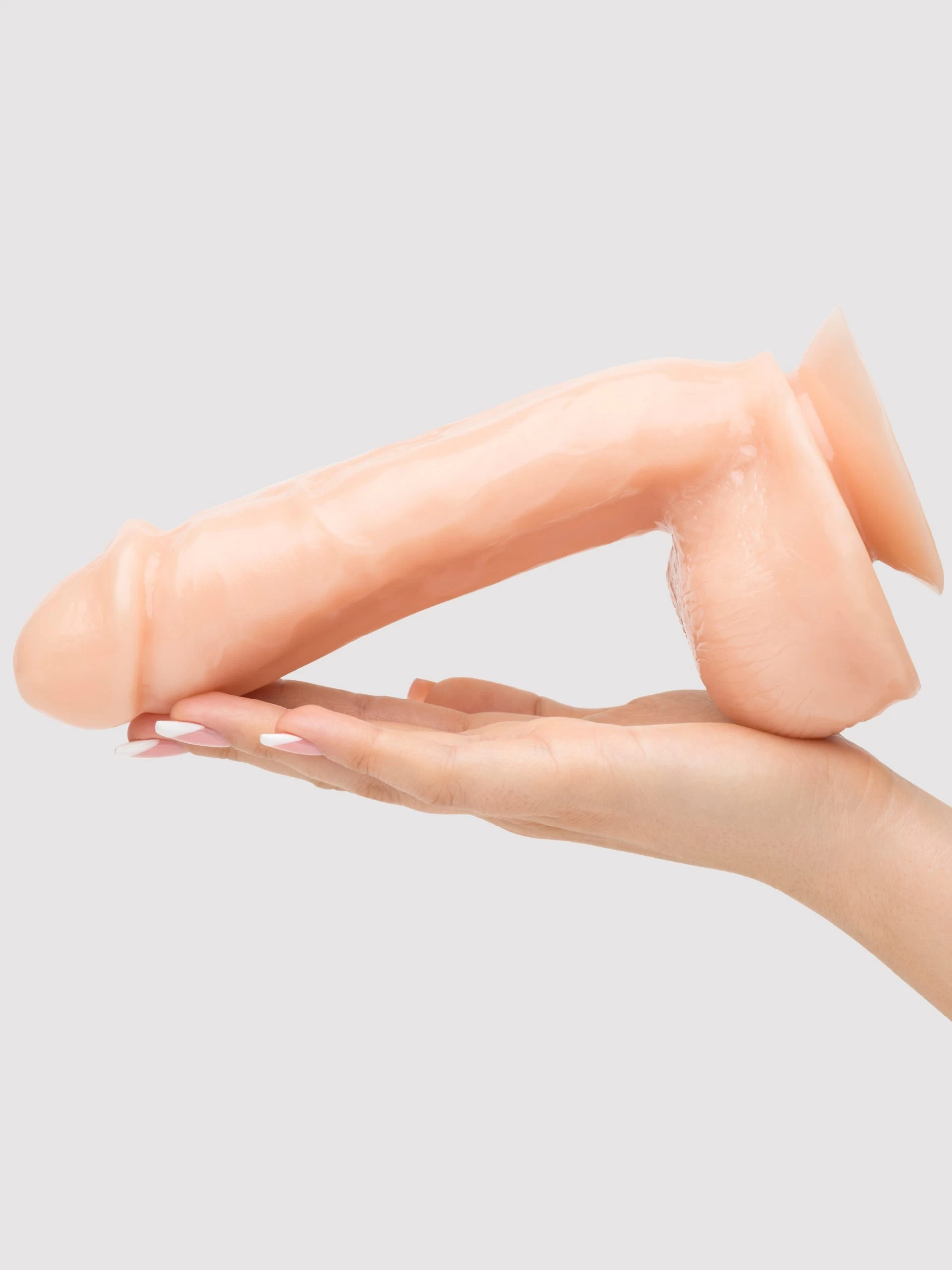 - Flexible realistic 7-inch dildo with balls for completely authentic play, pegging and strap-on fun