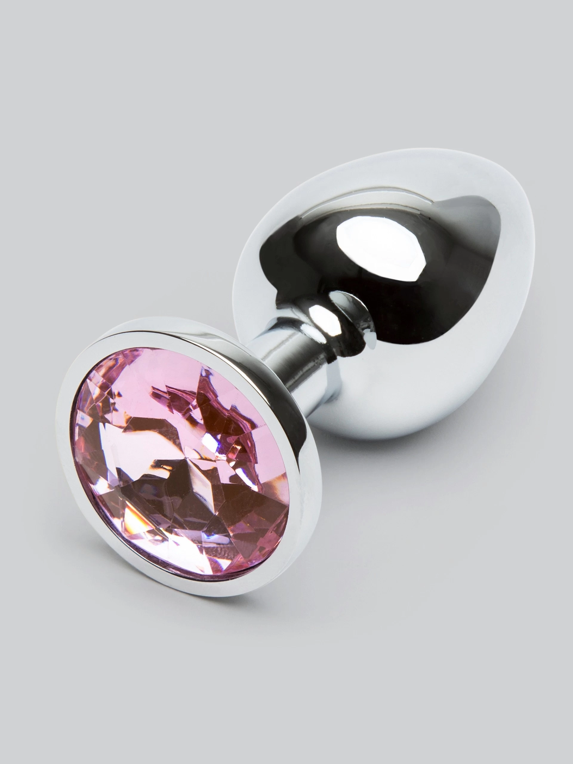 - Small metal butt plug with jeweled base for firm, filling sensations