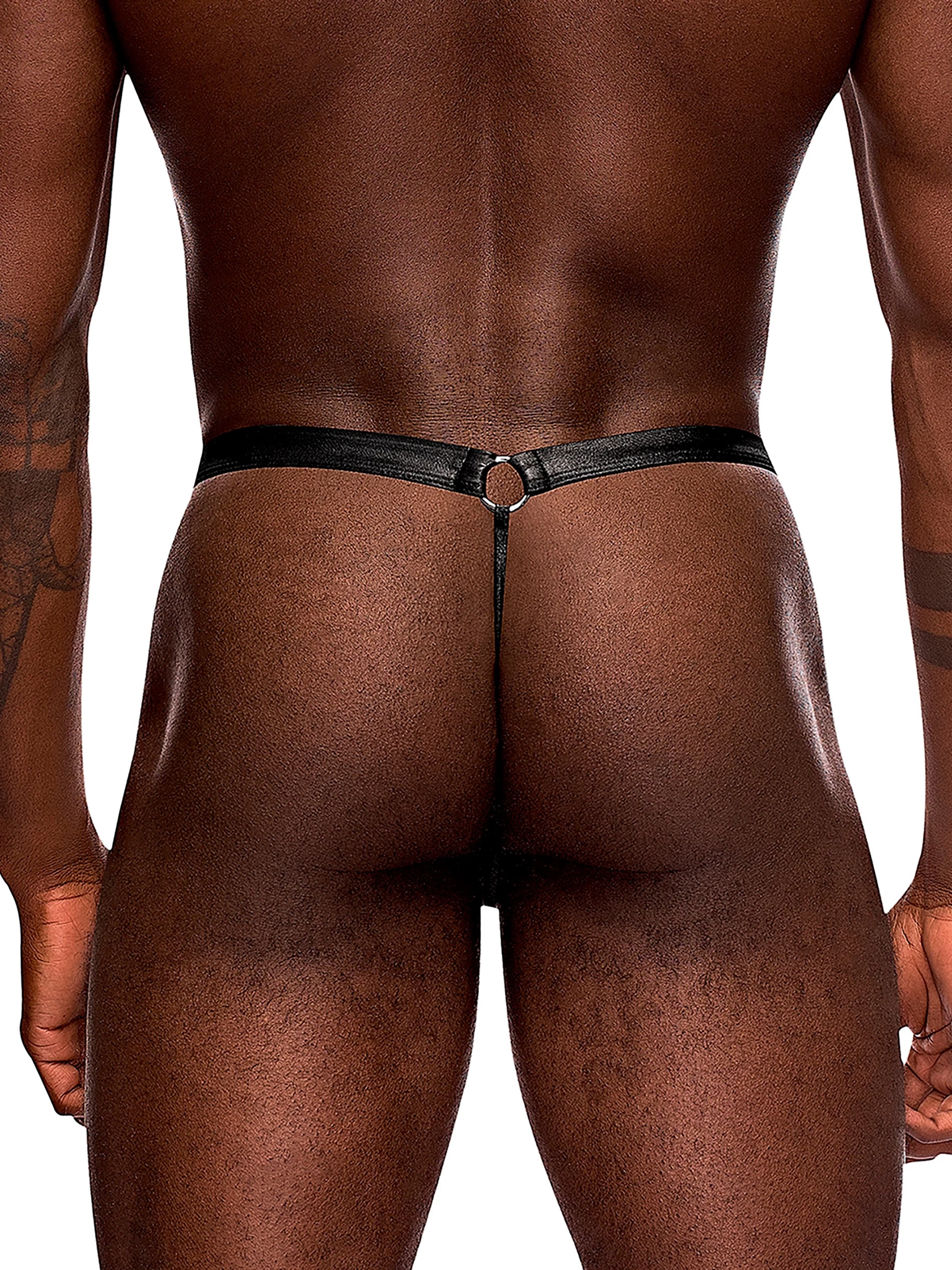 - Wet-look lycra thong with O-rings for fetish style and BDSM play