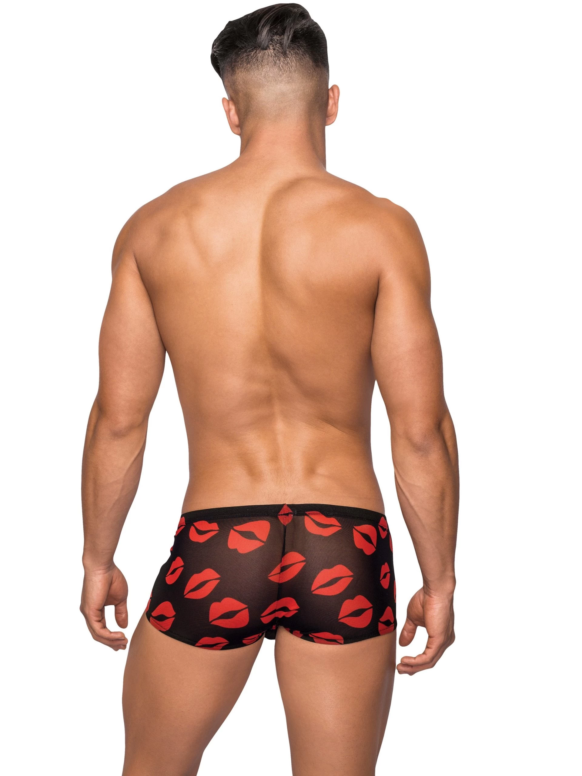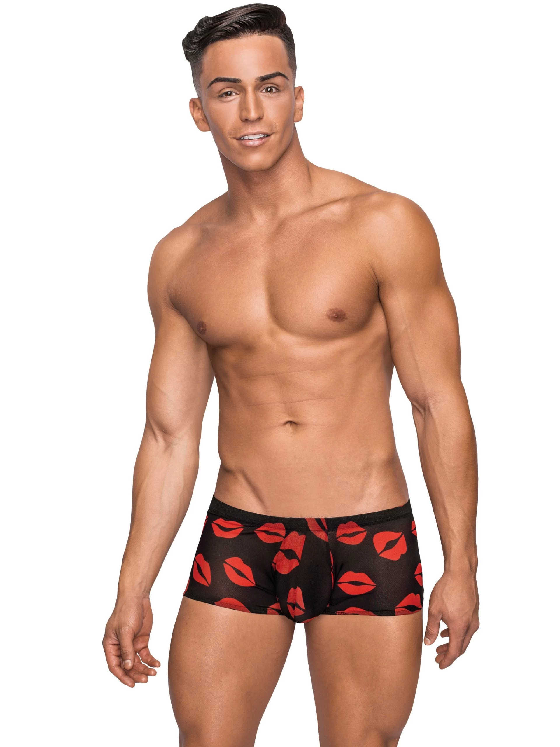 - Mini black mesh boxer shorts with red kisses for a fun bedroom look
