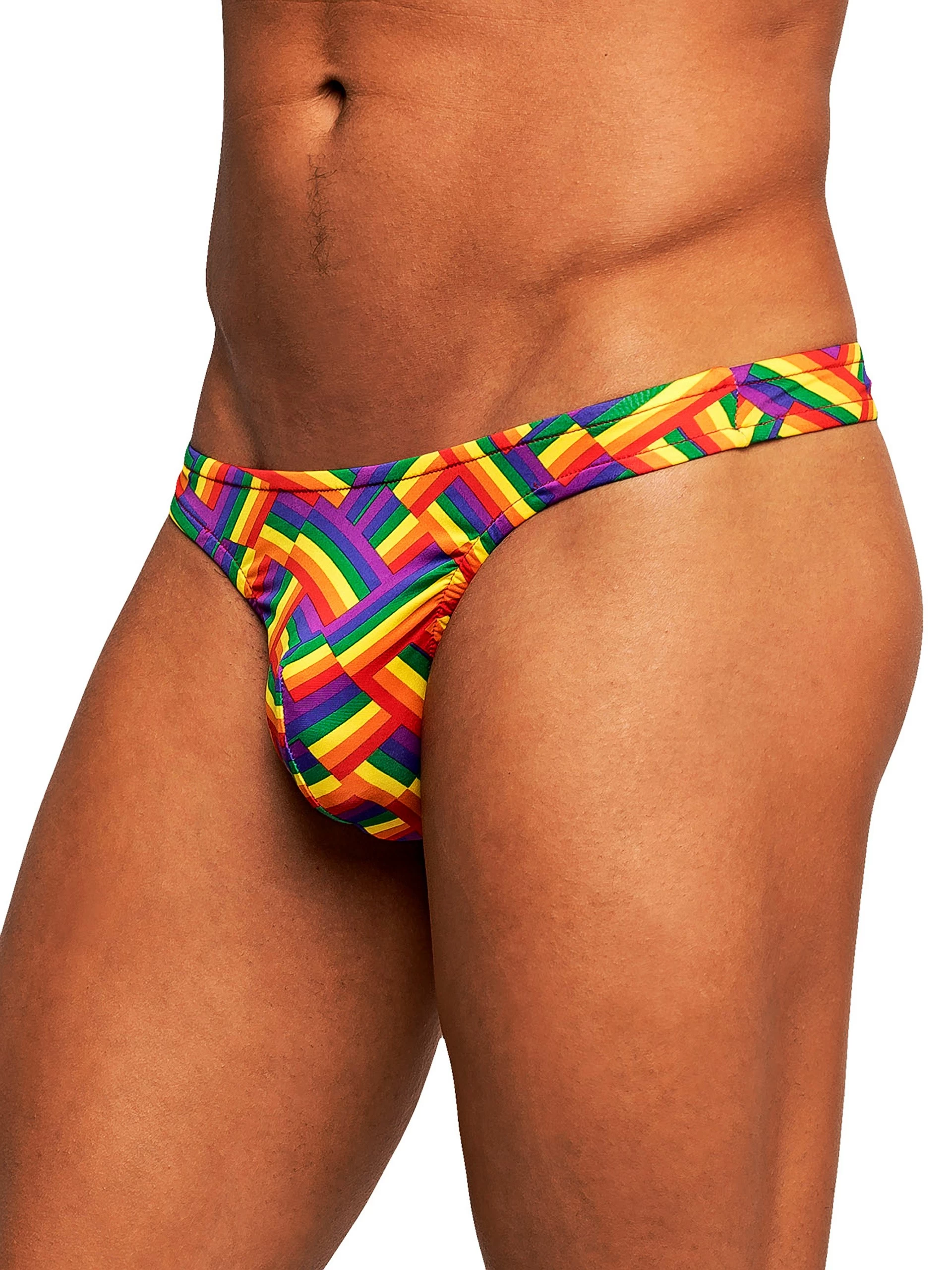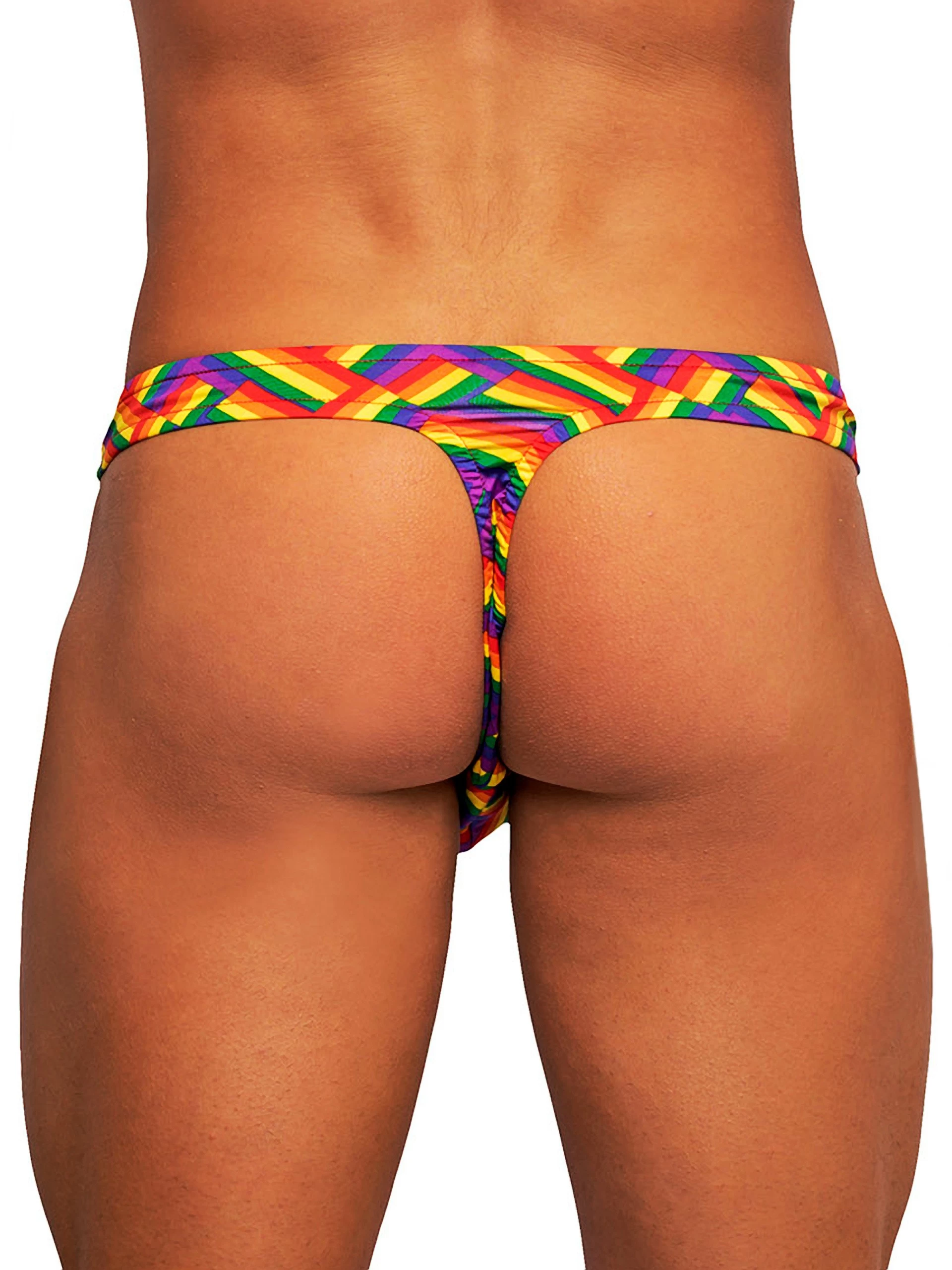 - Colorful flag print men’s thong for a rainbow bright bulge